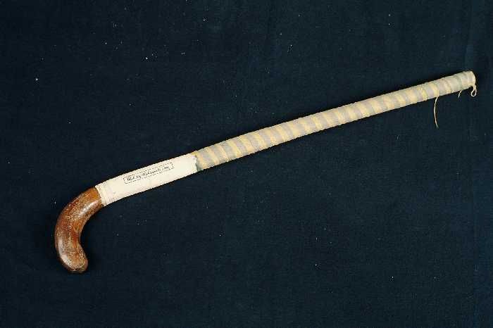 Hockeystick voor kind met geel-blauw windsel om steel