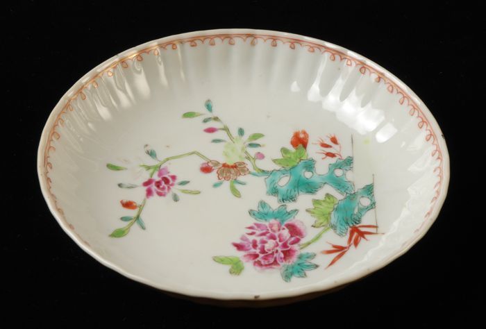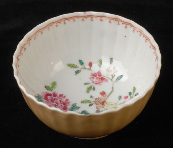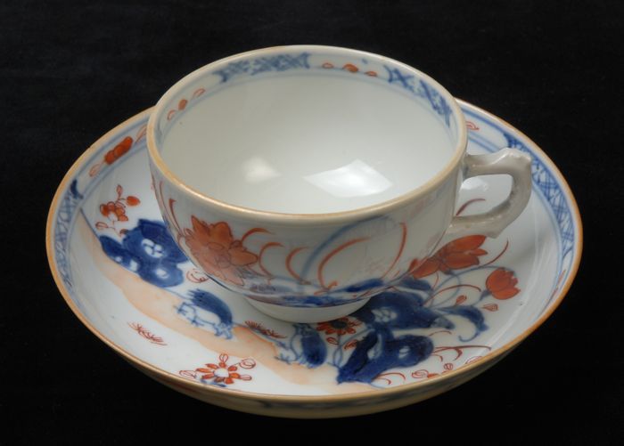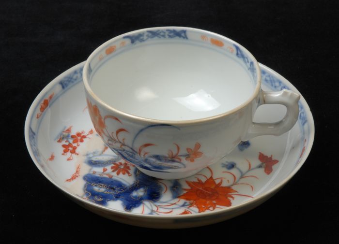 Kop van kop en schotel met meerkleurige bloemtakken,...