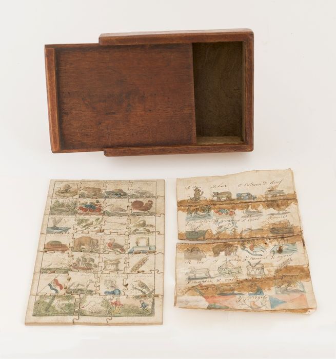 Legpuzzel met voorbeeld in kist, zogenaamde alfabetp...