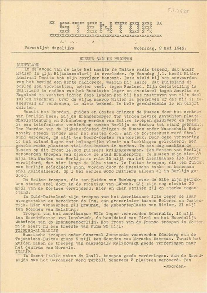 De Bevrijding. No. 220. 12 April 1945. Uitgave voor ...