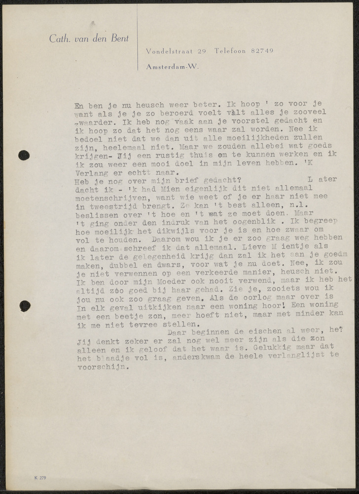 Brief Amsterdam, ongedateerd Cath. van den Bent