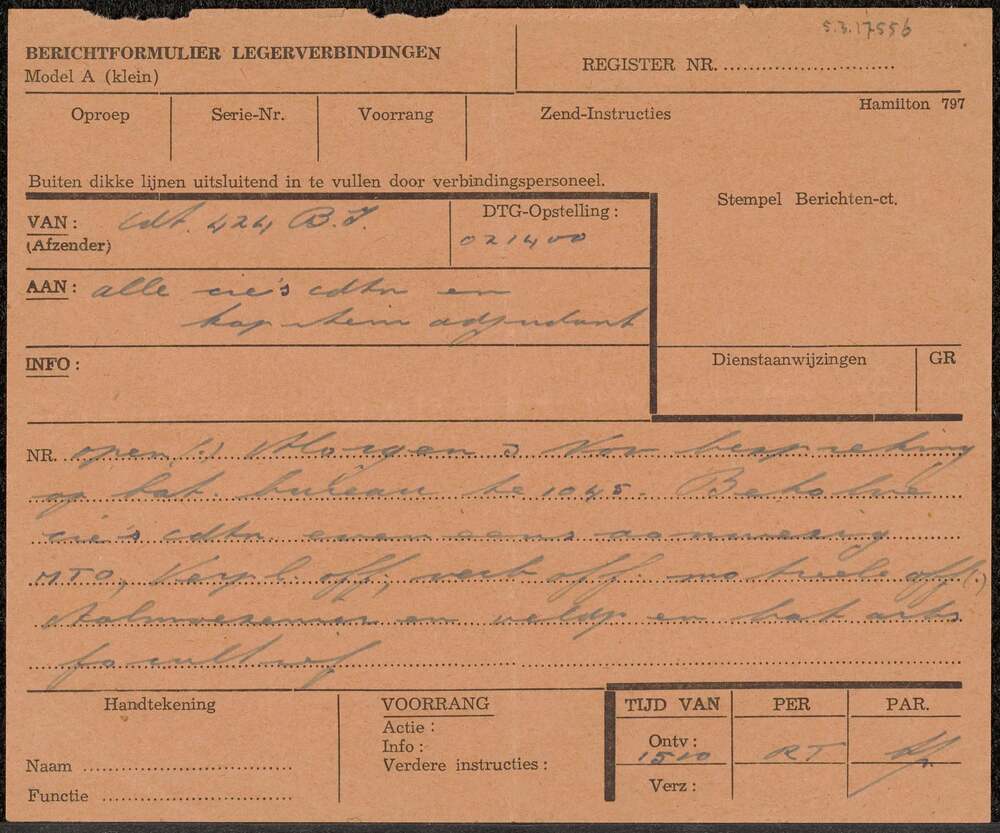 Berichtformulier legerverbindingen van commandant 42...