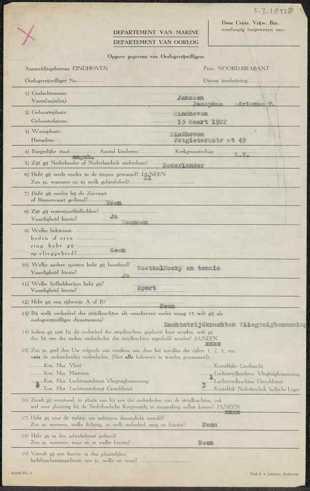 Aanmeldingsformulier oorlogsvrijwilliger Aanmeldings...