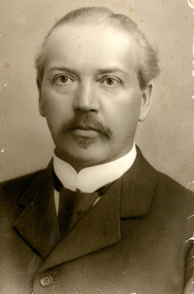 Zwart-wit foto van Dhr. J.Thie directeur van het pos...