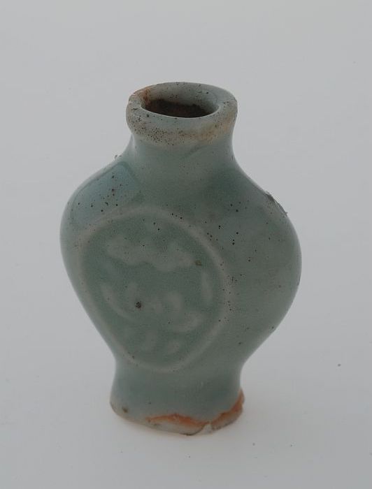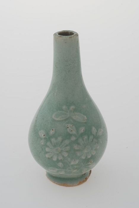 Groen flesje met bloemmotief in reliëf