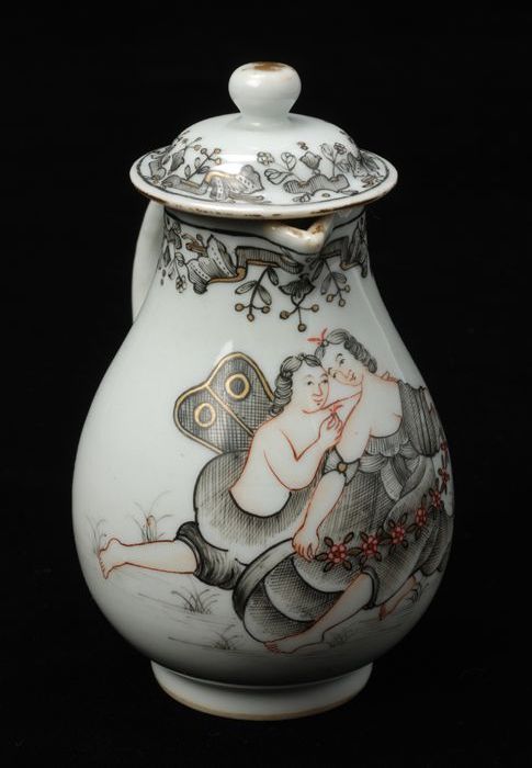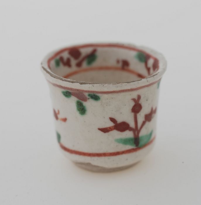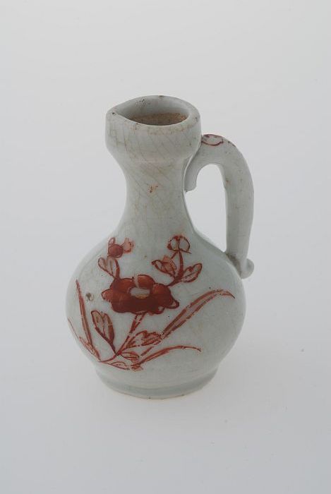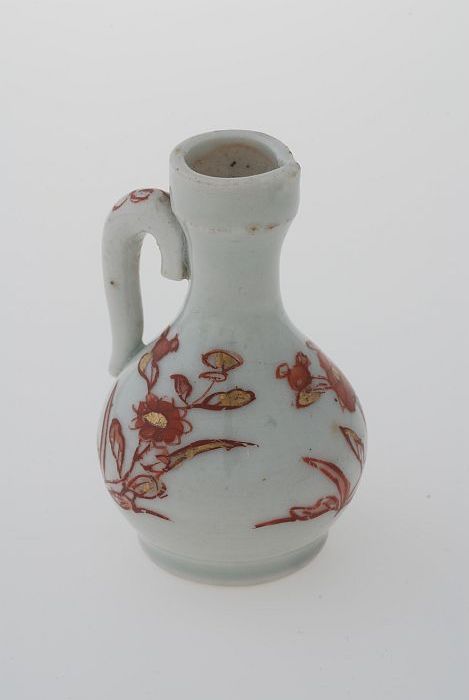 Wit kannetje met goudkleurige en rood bloemmotief