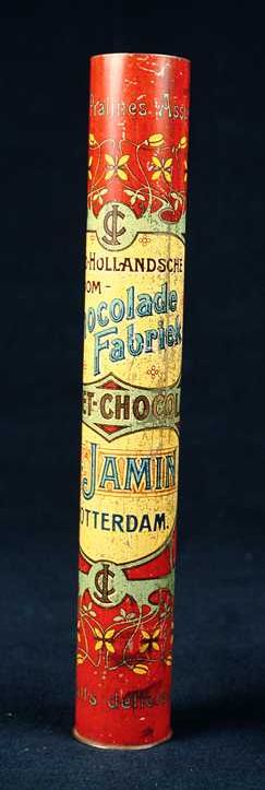 Smal rond blik, "C. Jamin, Croquet-chocolade", rood,...
