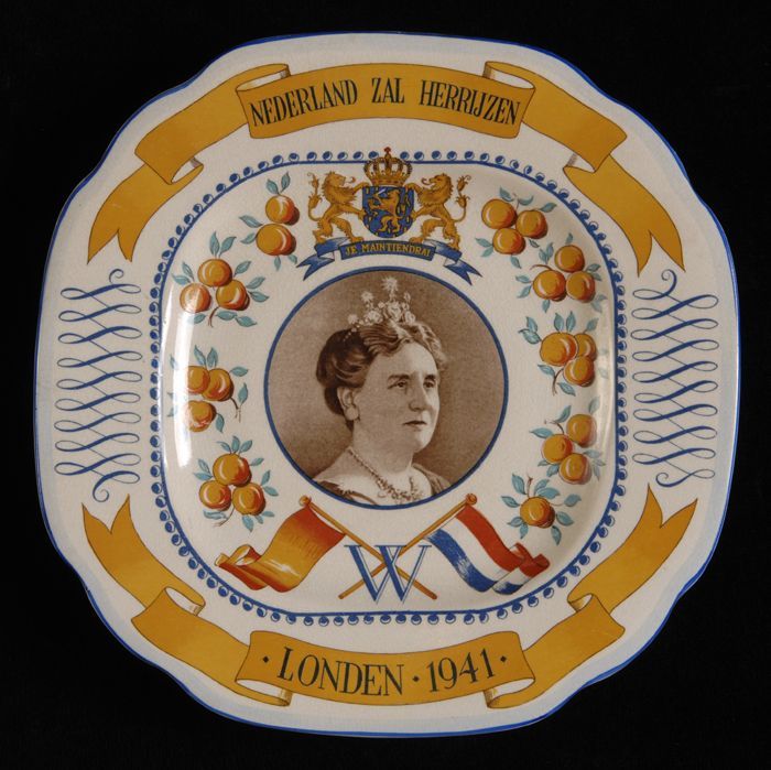 Vierkant meerkleurig herdenkingsbord met portret Wil...