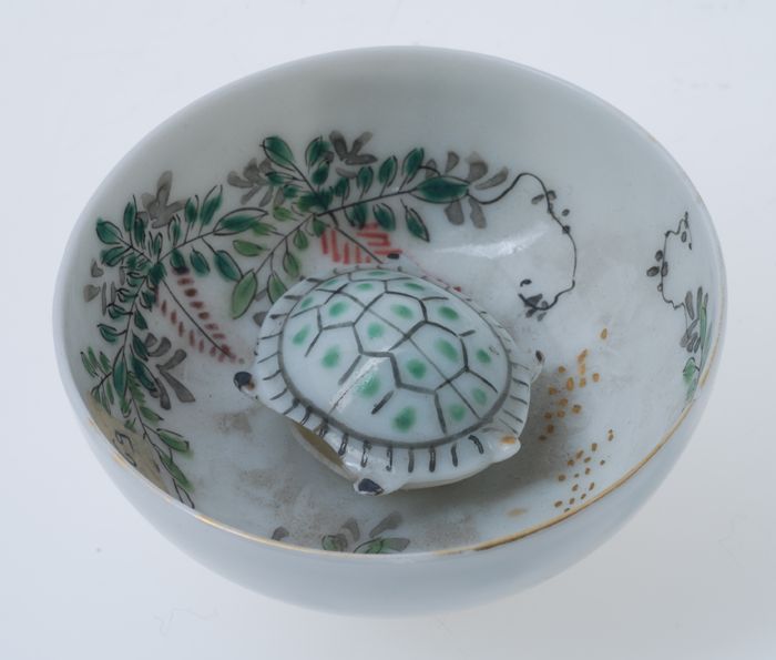 Witte kop met schildpad erin
