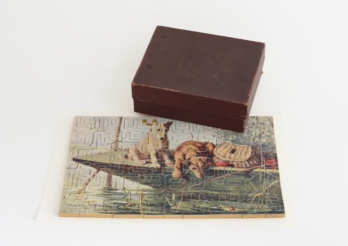 Houten legpuzzel 'a frugal meal', twee honden op een...