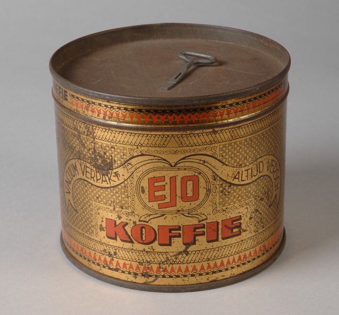 Rond koffieblik met door middel van sleutel te opene...