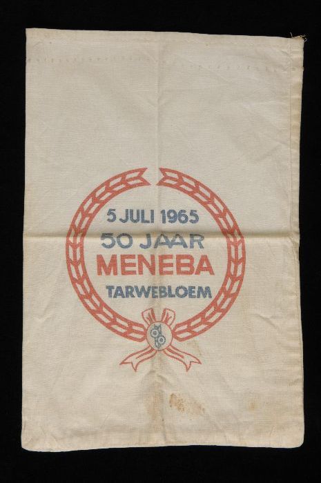 Kleine meelbaal, zak van wit katoen met opdruk in ro...