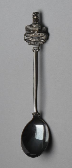 Zilverkleurige theelepel "JEUGD CENTRUM / DE HEUVEL"