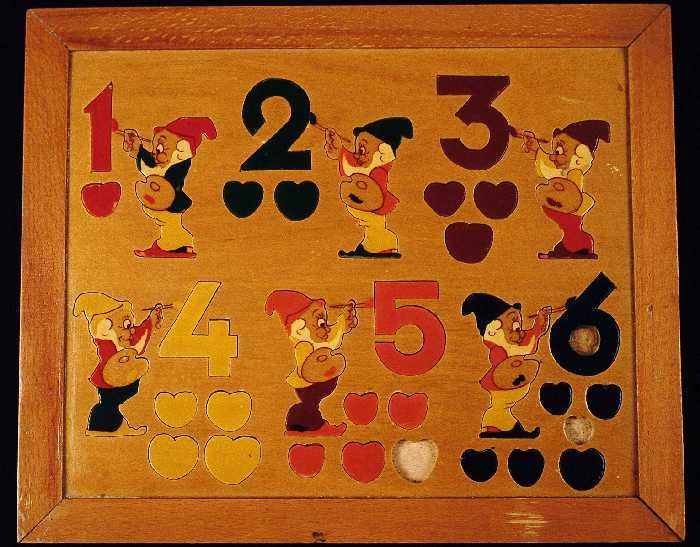 Puzzel met cijfers 1 tot en met 6, kabouters en appels