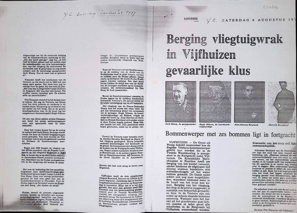 Overdruk : Kranten artikel "Berging vliegtuigwrak in...