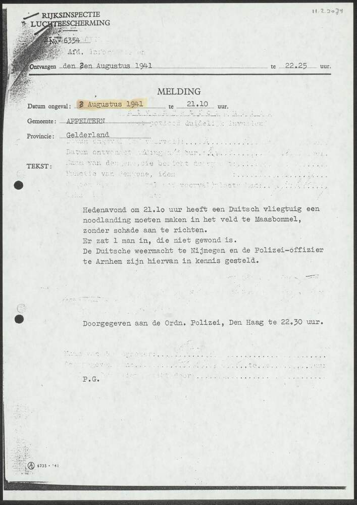 Proces-verbaal Politie Appeltern inzake noodlanding ...