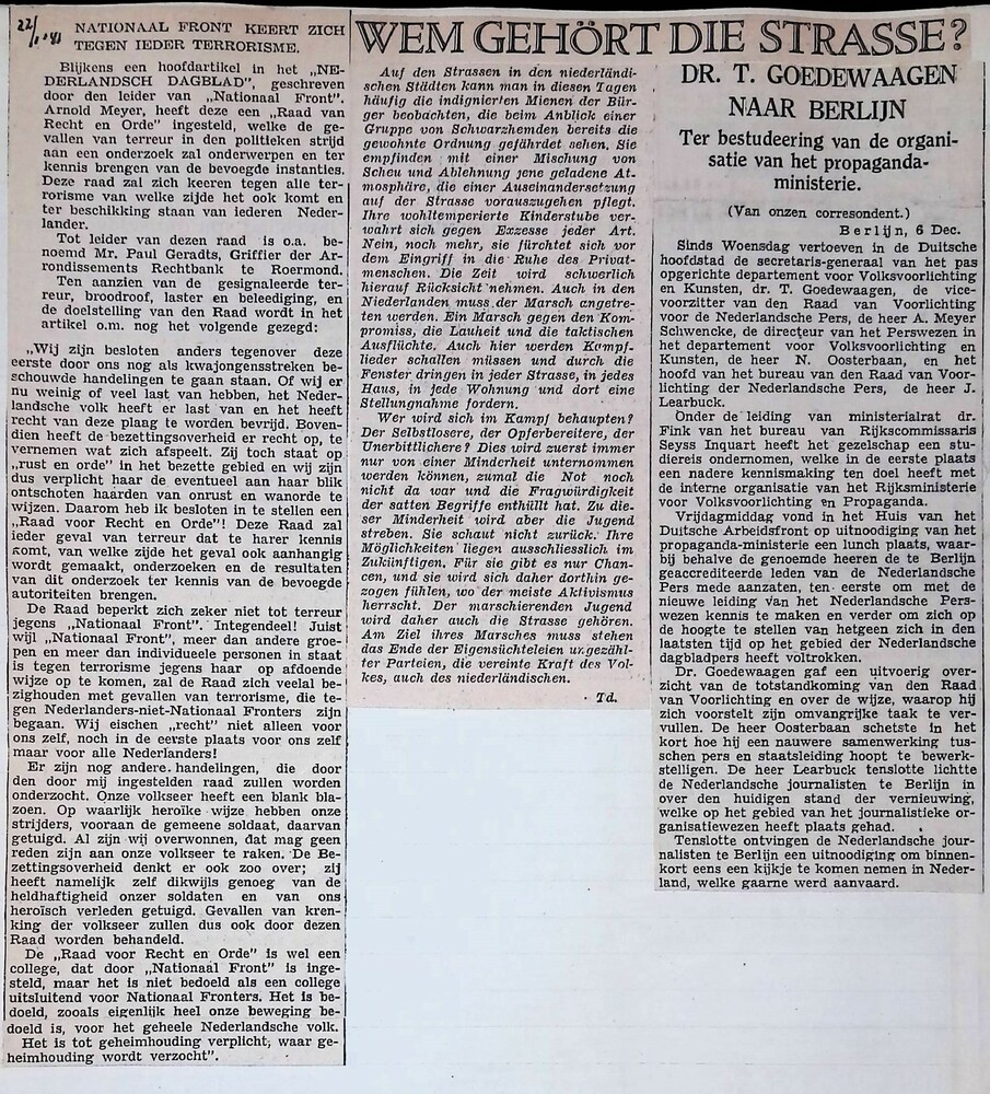 Verzameling krantenknipsels uit de periode 1940-1942