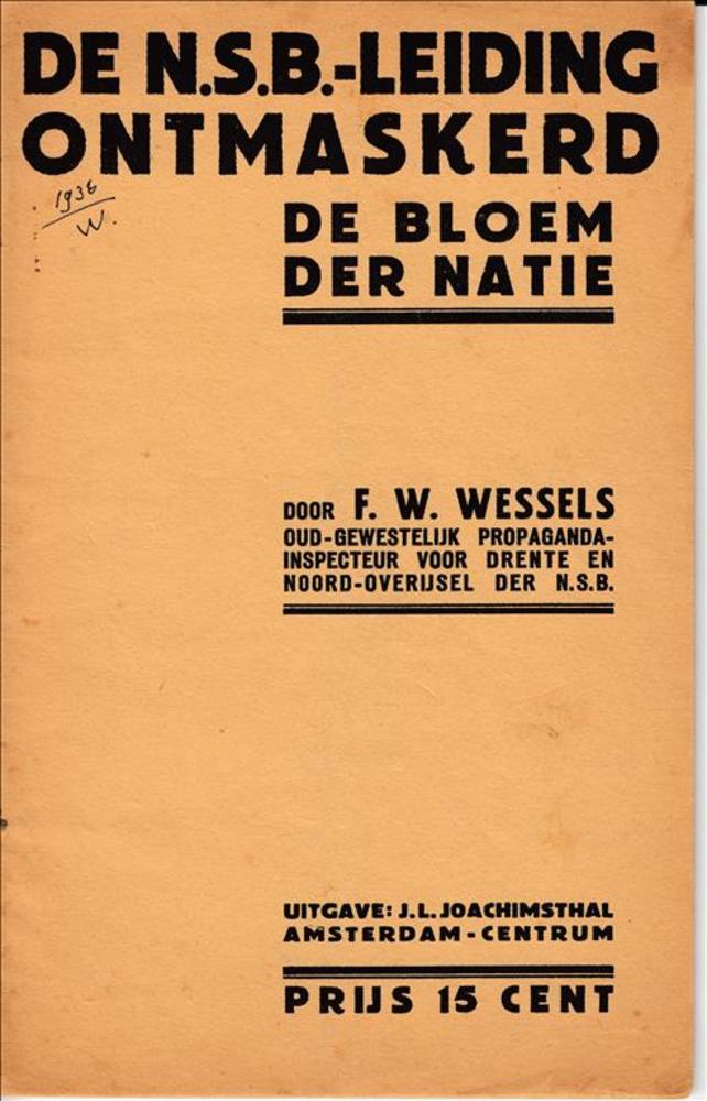 "De NSB-leiding ontmaskerd". F.W. Wessels. (1936)
