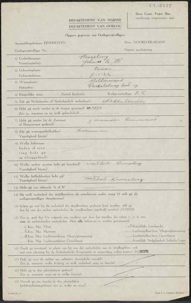 Aanmeldingsformulier oorlogsvrijwilliger Aanmeldings...