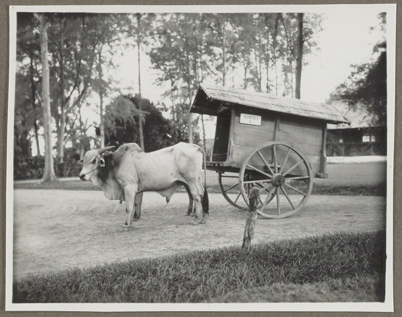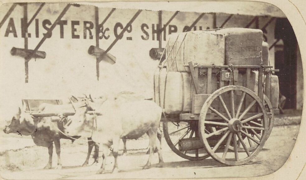 Ossenkar voor gebouw van de fa. McAlister & Co. Ship...