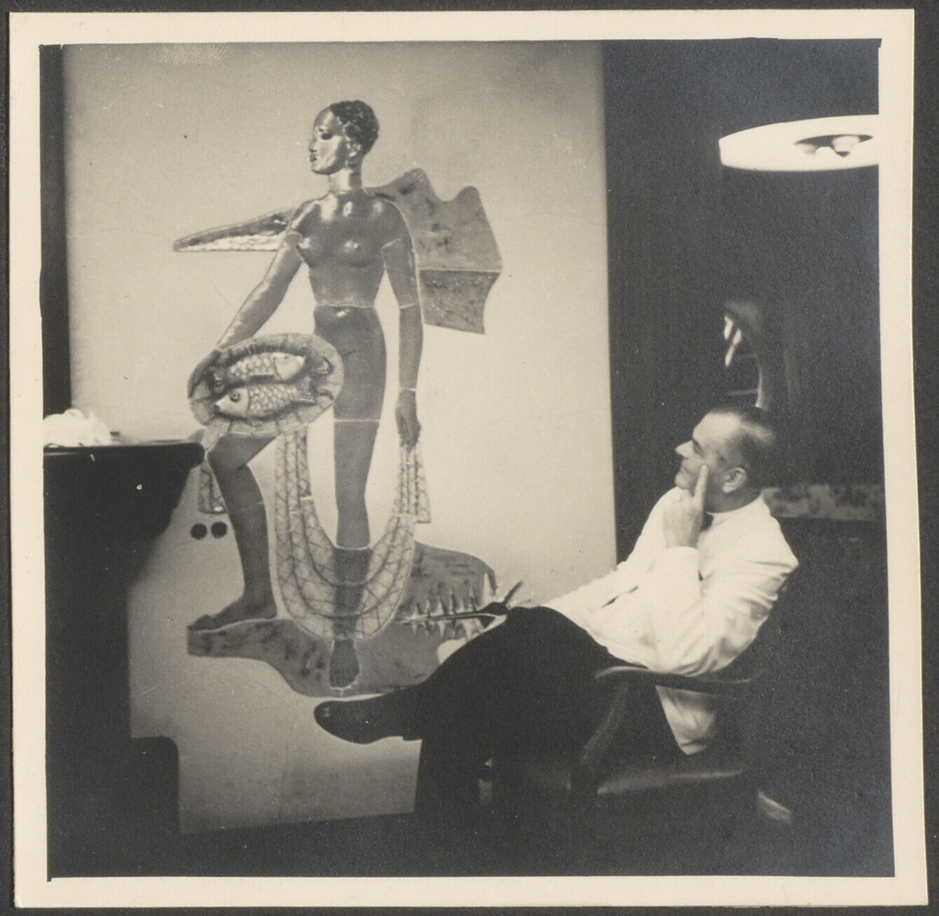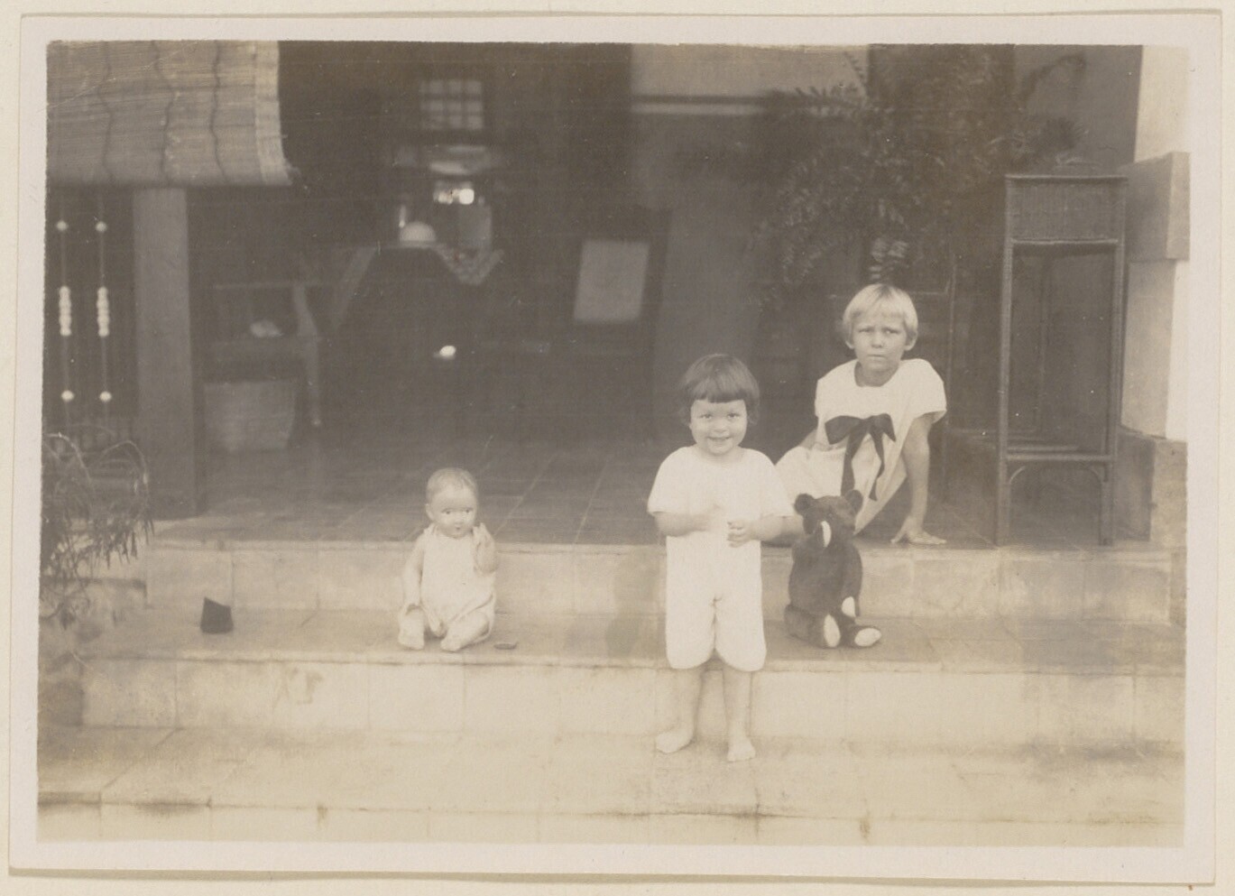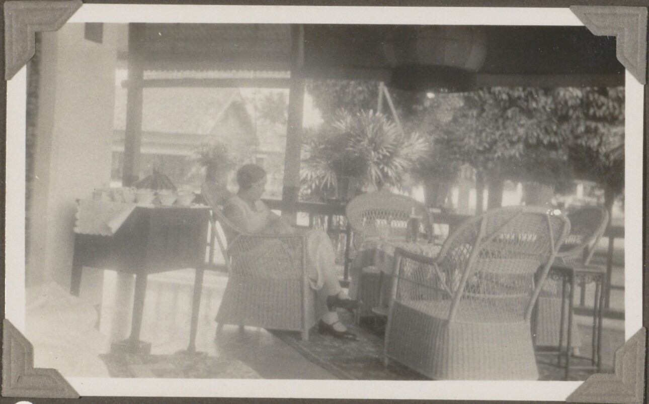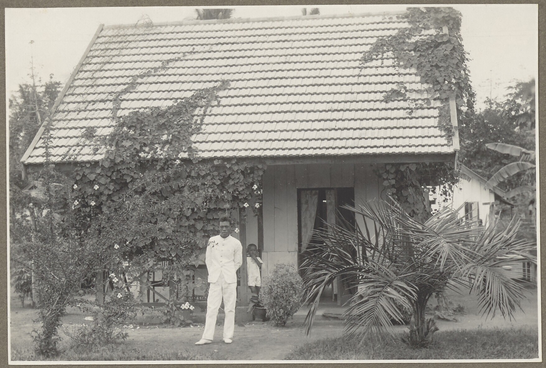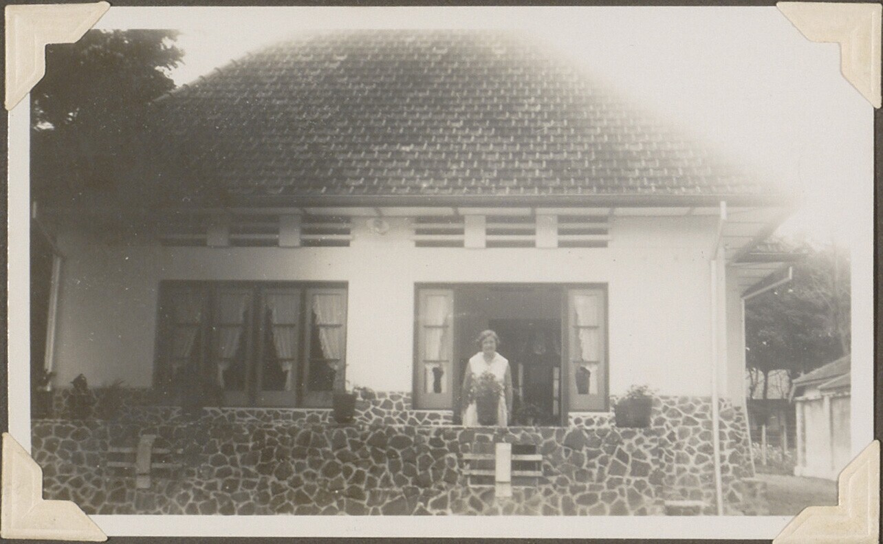 W.L. Houbolt voor het huis van een ivoorsnijder