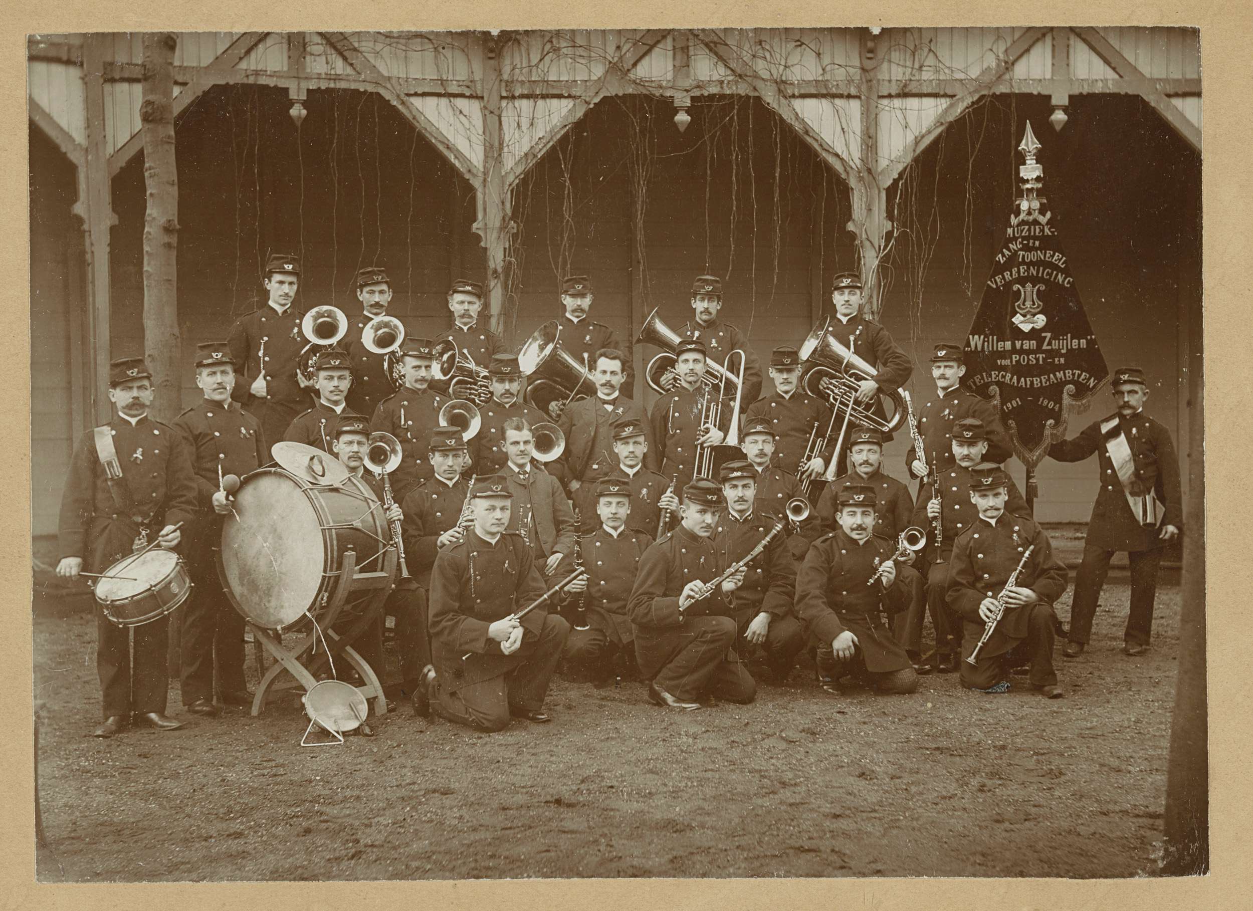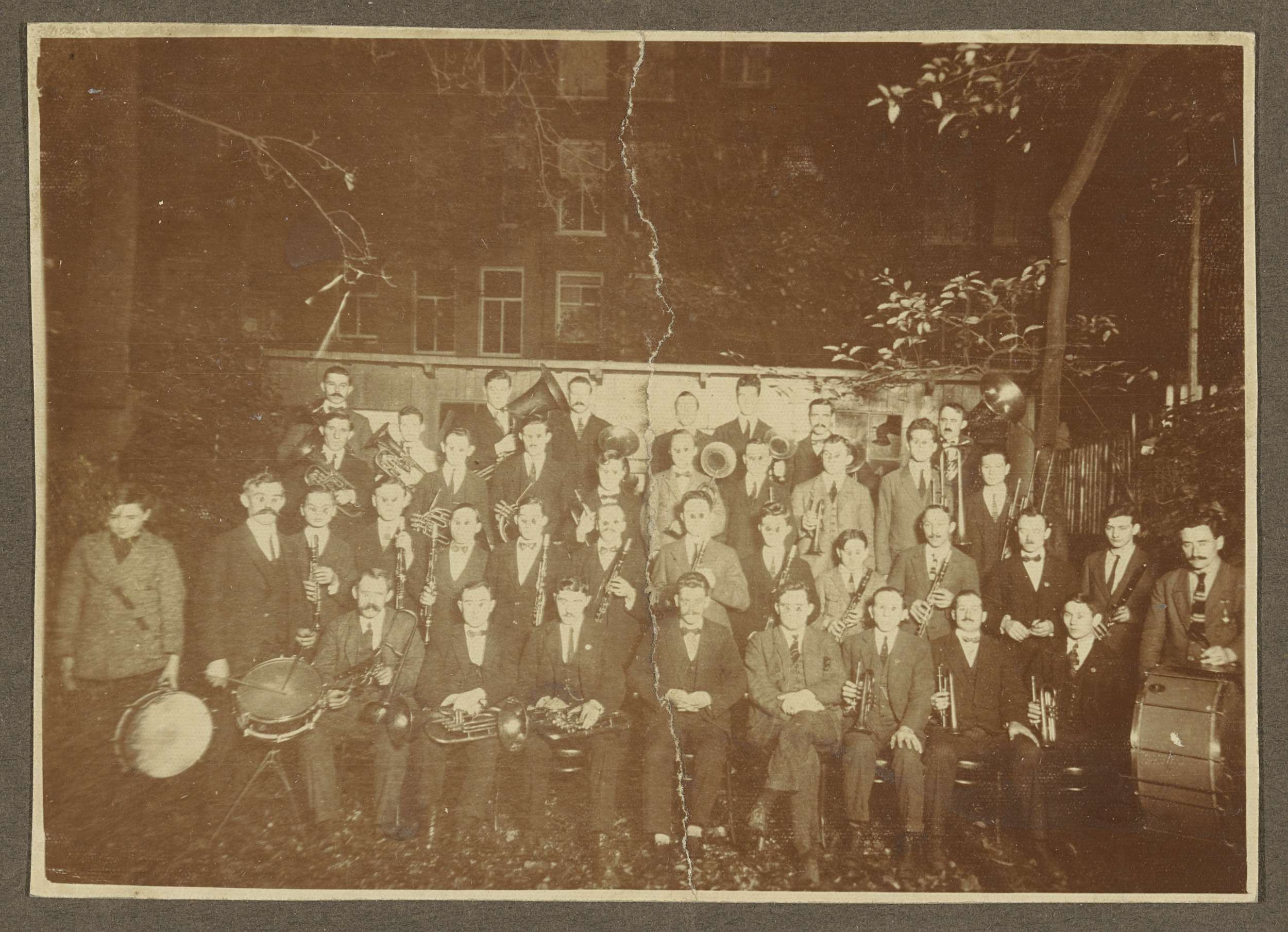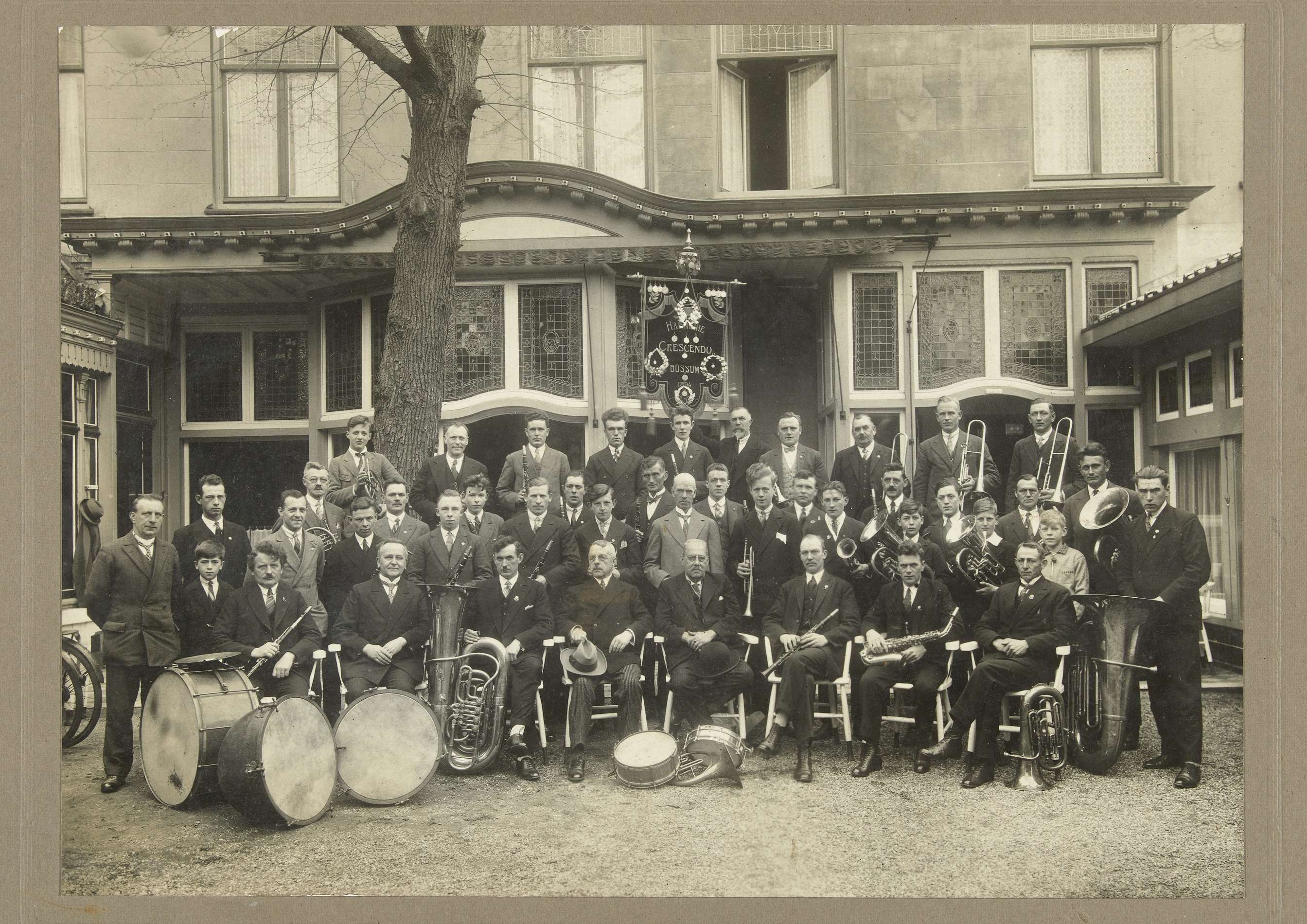 Groepsportret van de Amsterdamsche Postharmonie bij ...