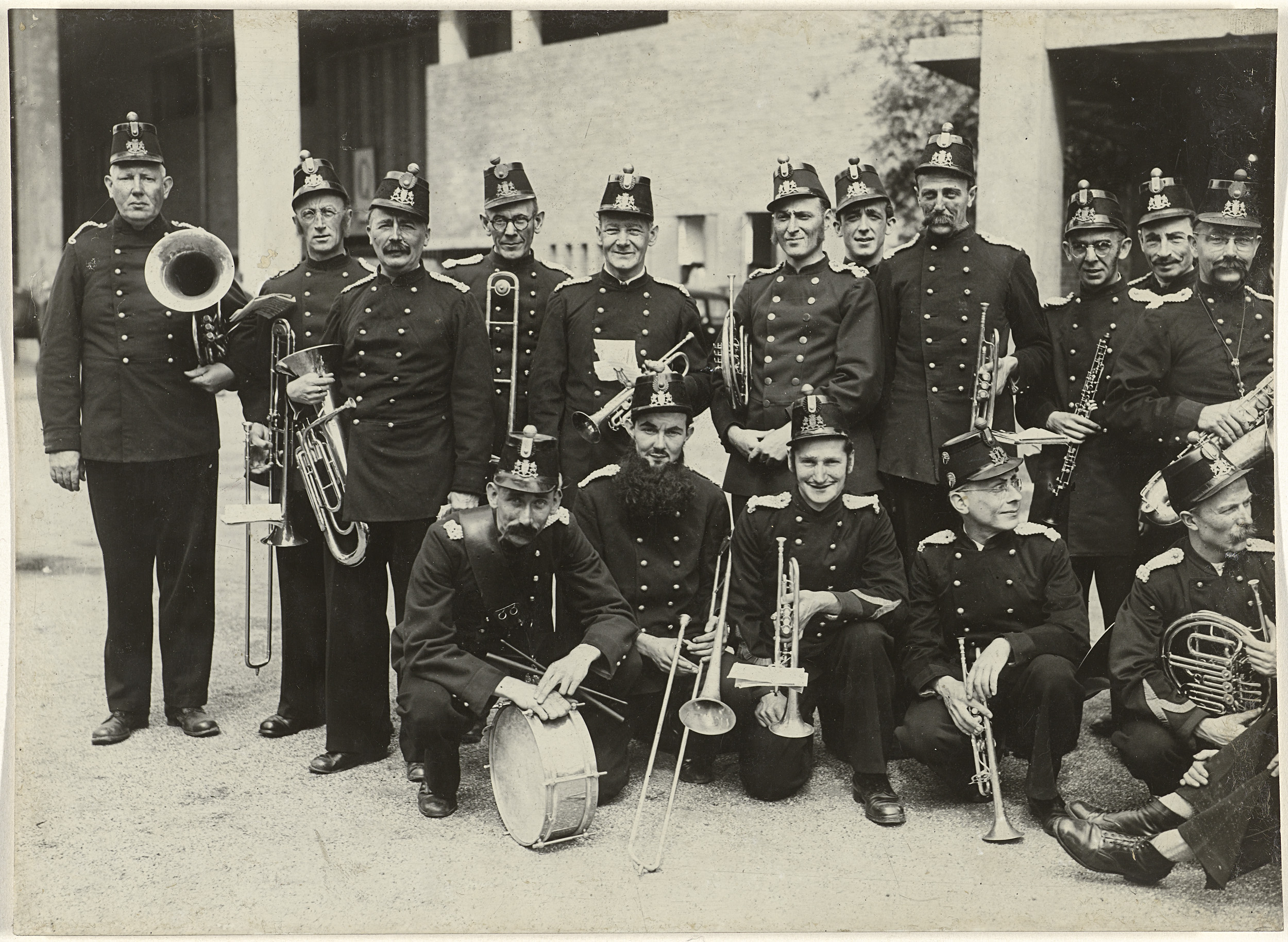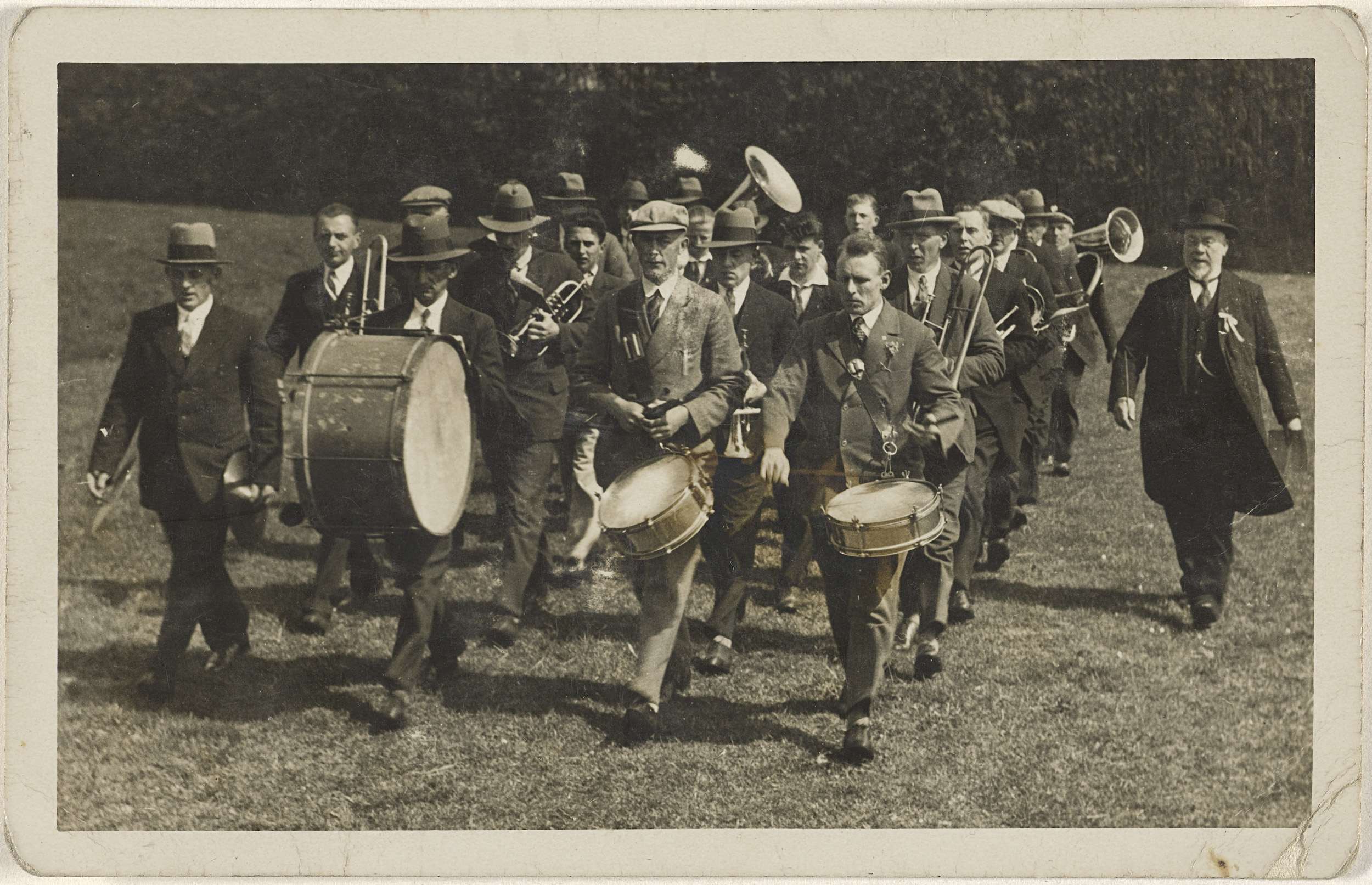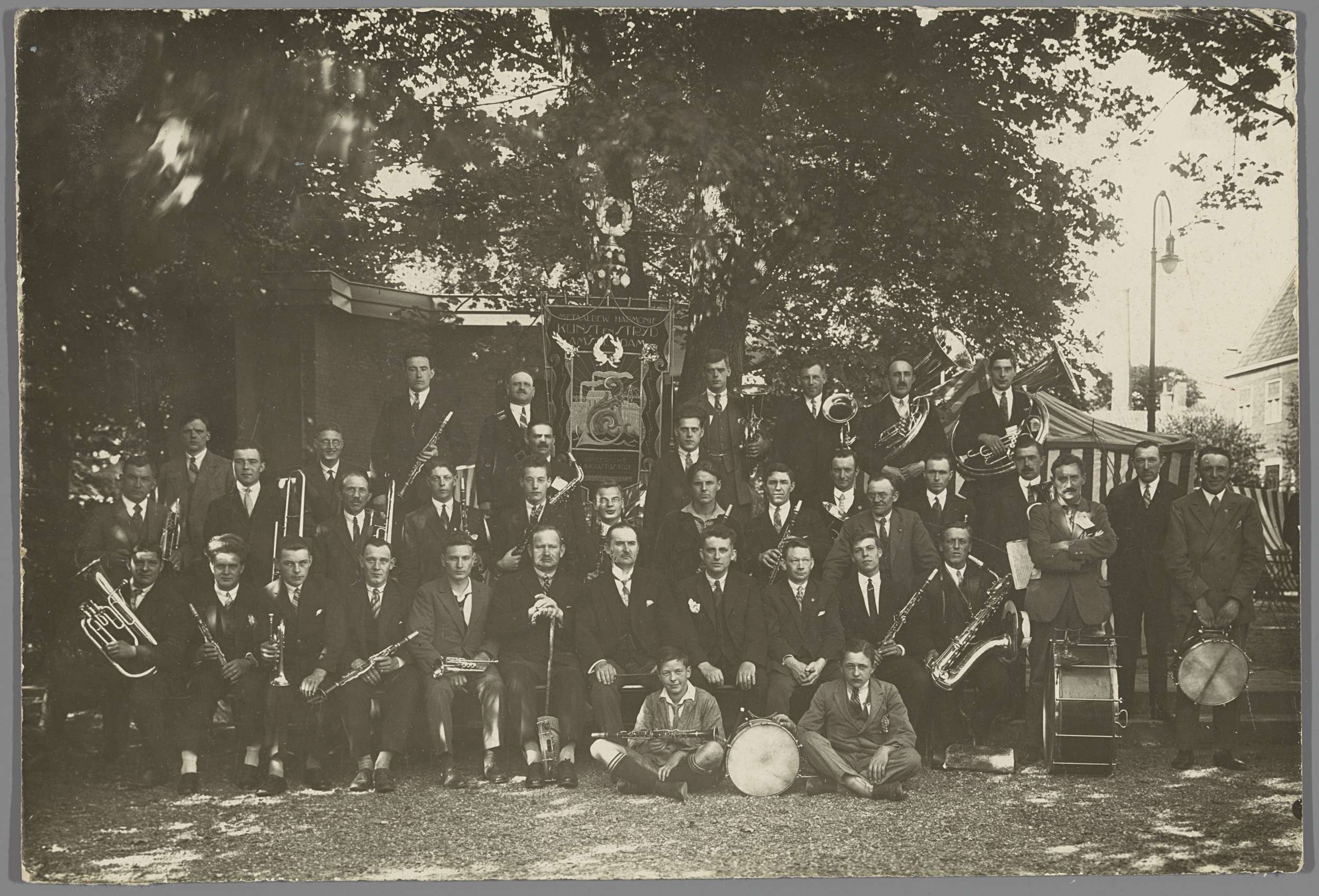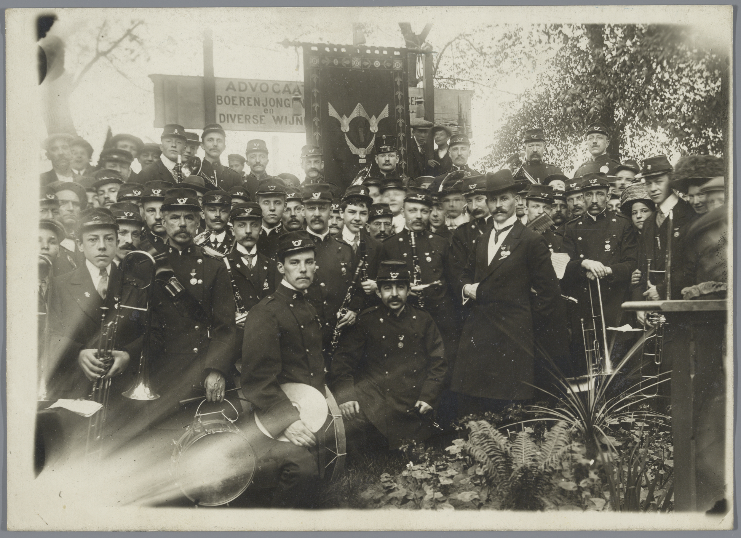 Groepsportret van de Amsterdamsche Postharmonie bij ...