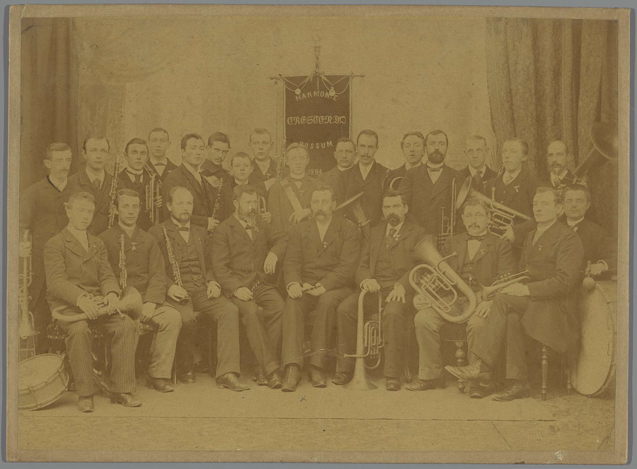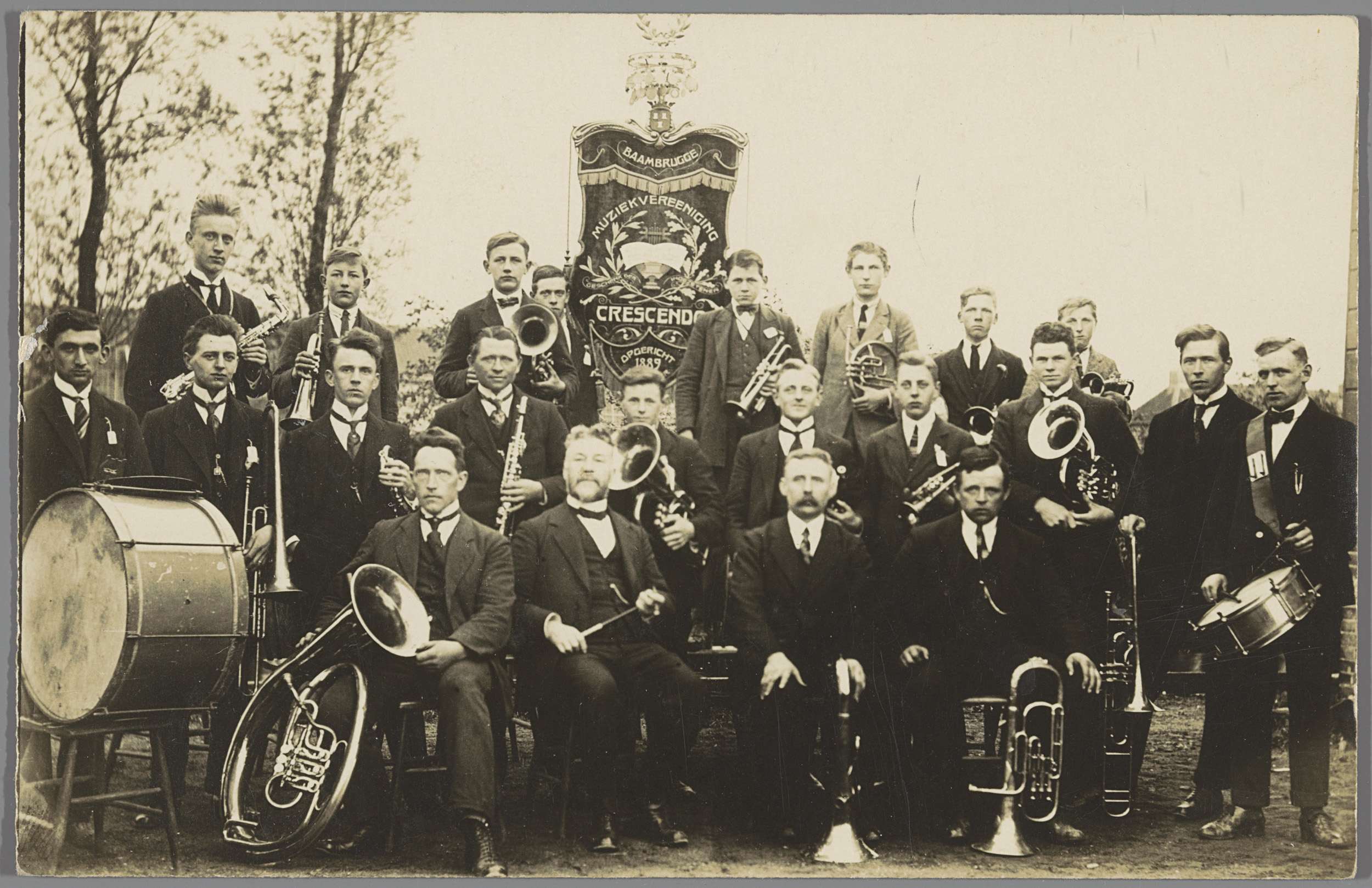 Groepsportret van muziekgezelschap 'Crescendo' in Doorn