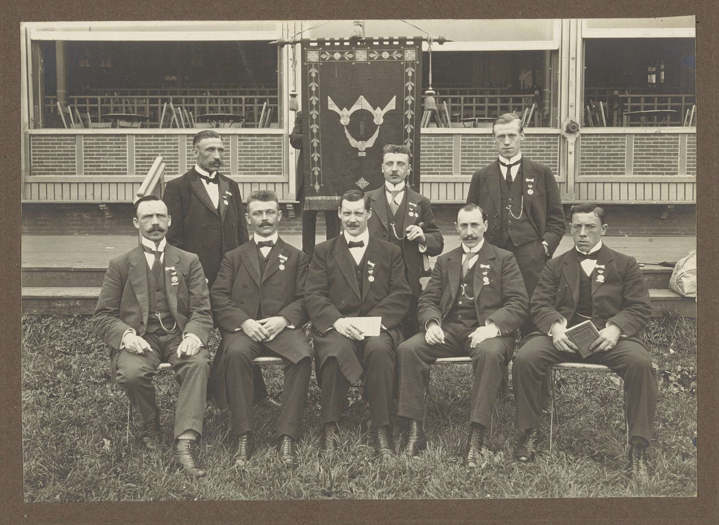 Groepsportret van leden van de Amsterdamsche Posthar...