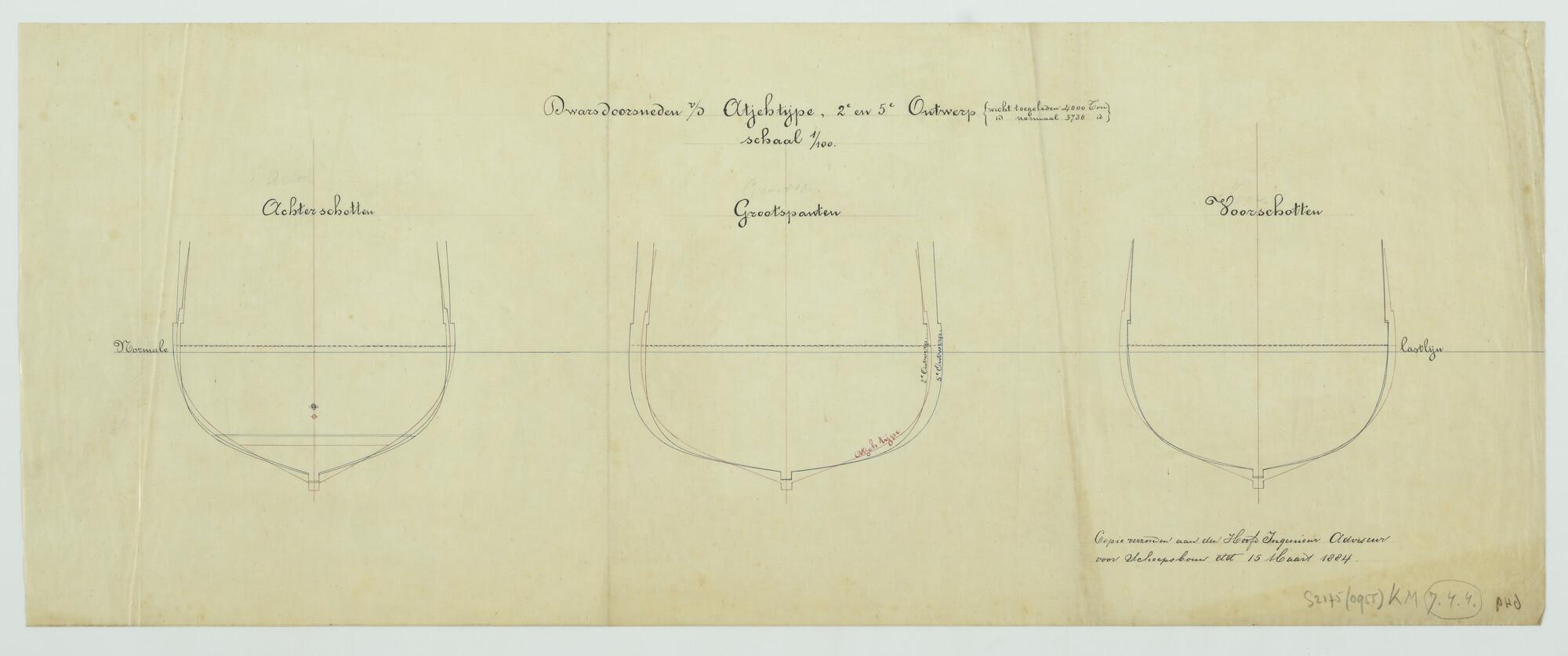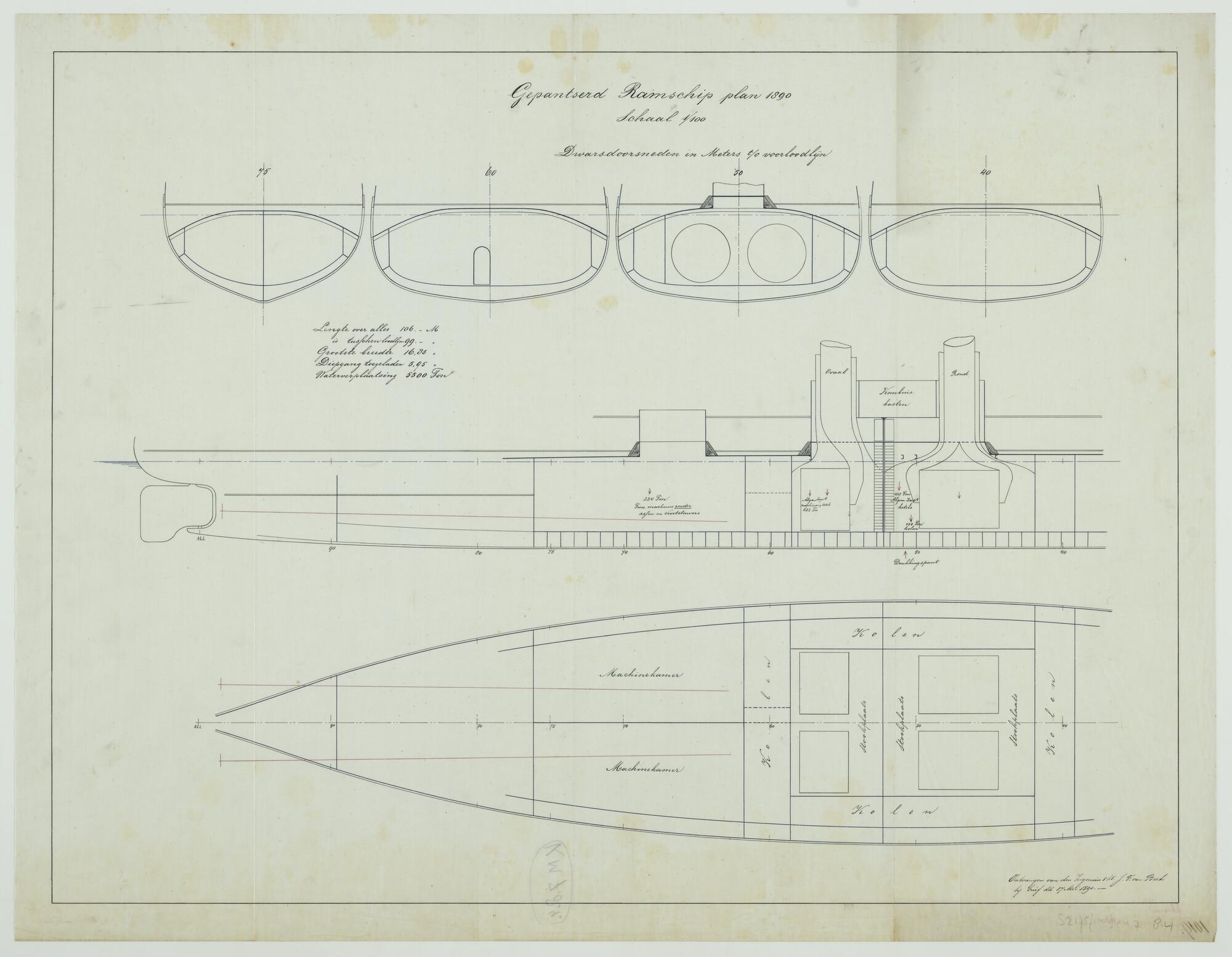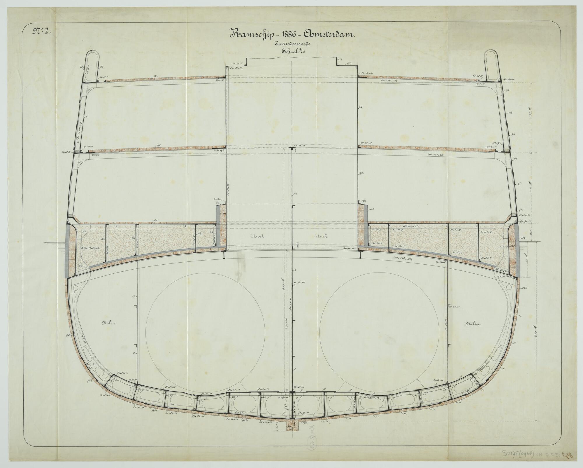 'Ontwerp ramschip 'Amsterdam', 1886'. Cellendekconst...