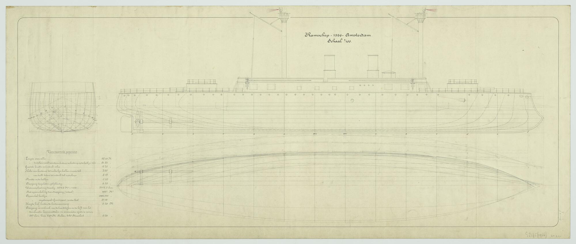 'Ontwerp ramschip 'Amsterdam', 1886'