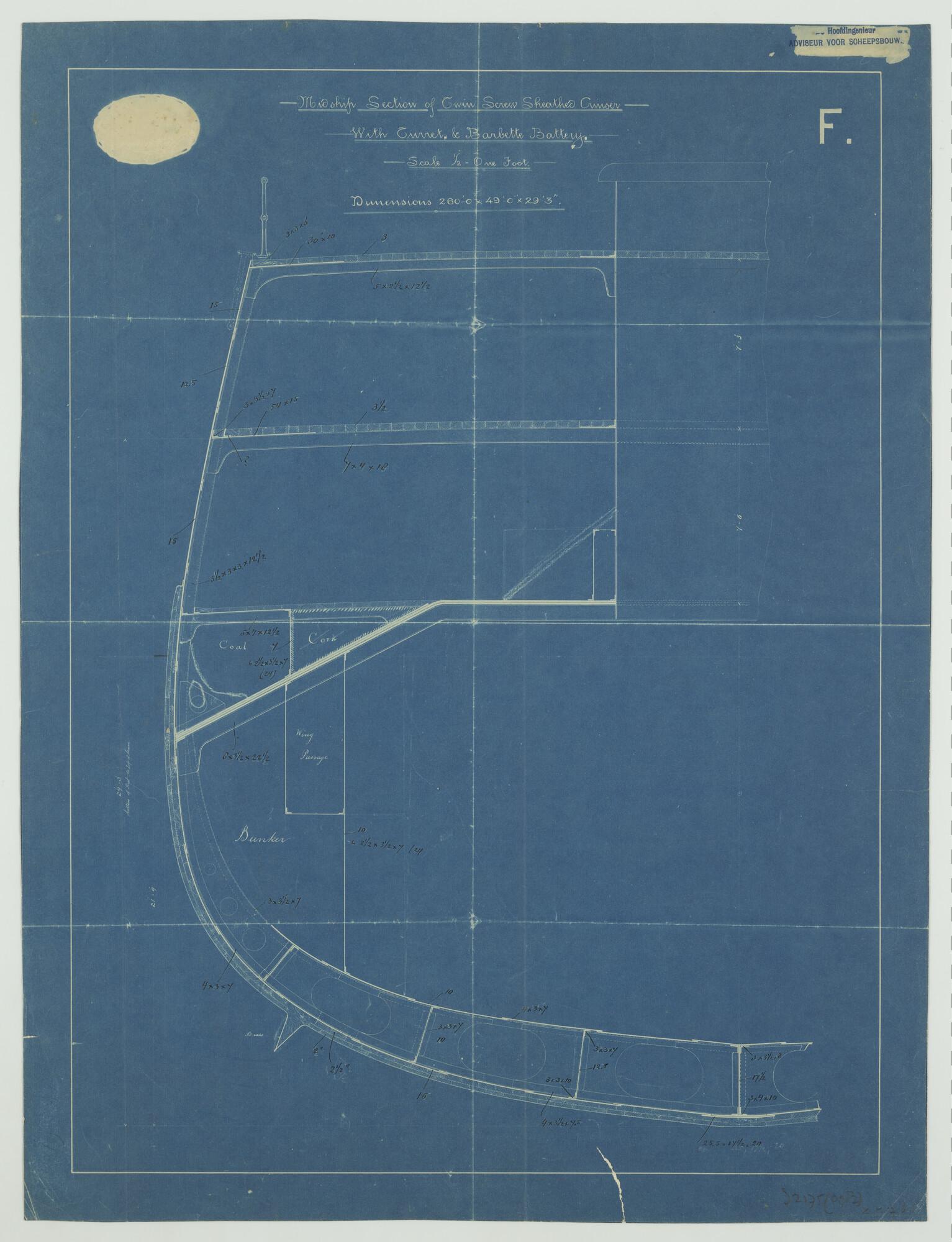 'Ontwerp ramschip 'Amsterdam' 1886' (citadelconstruc...