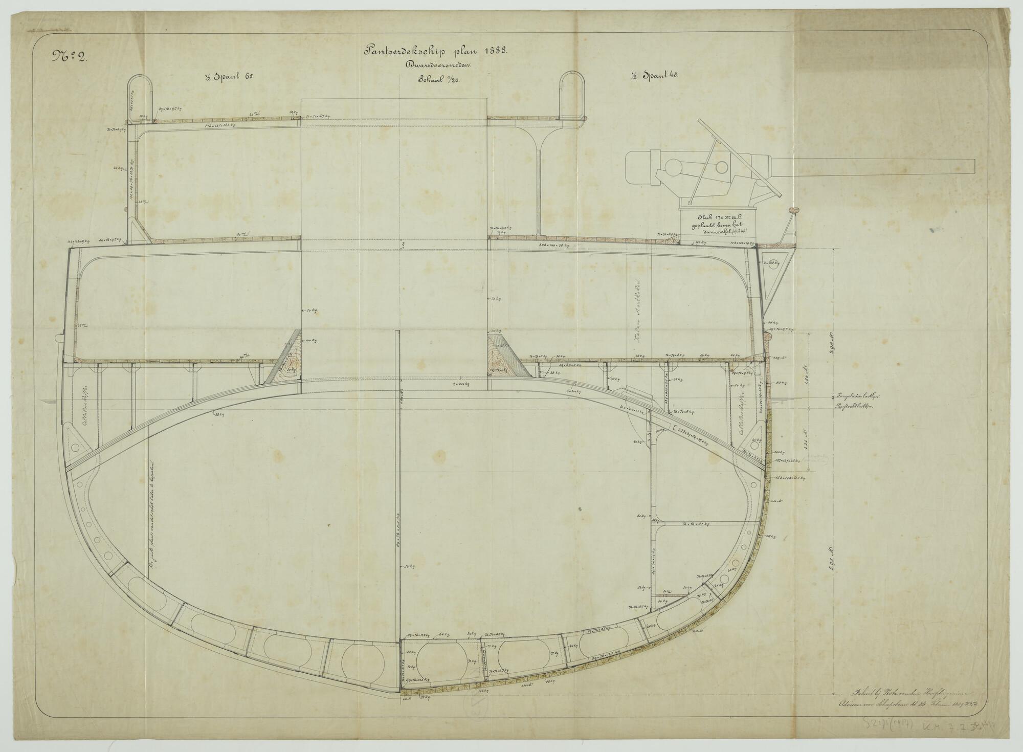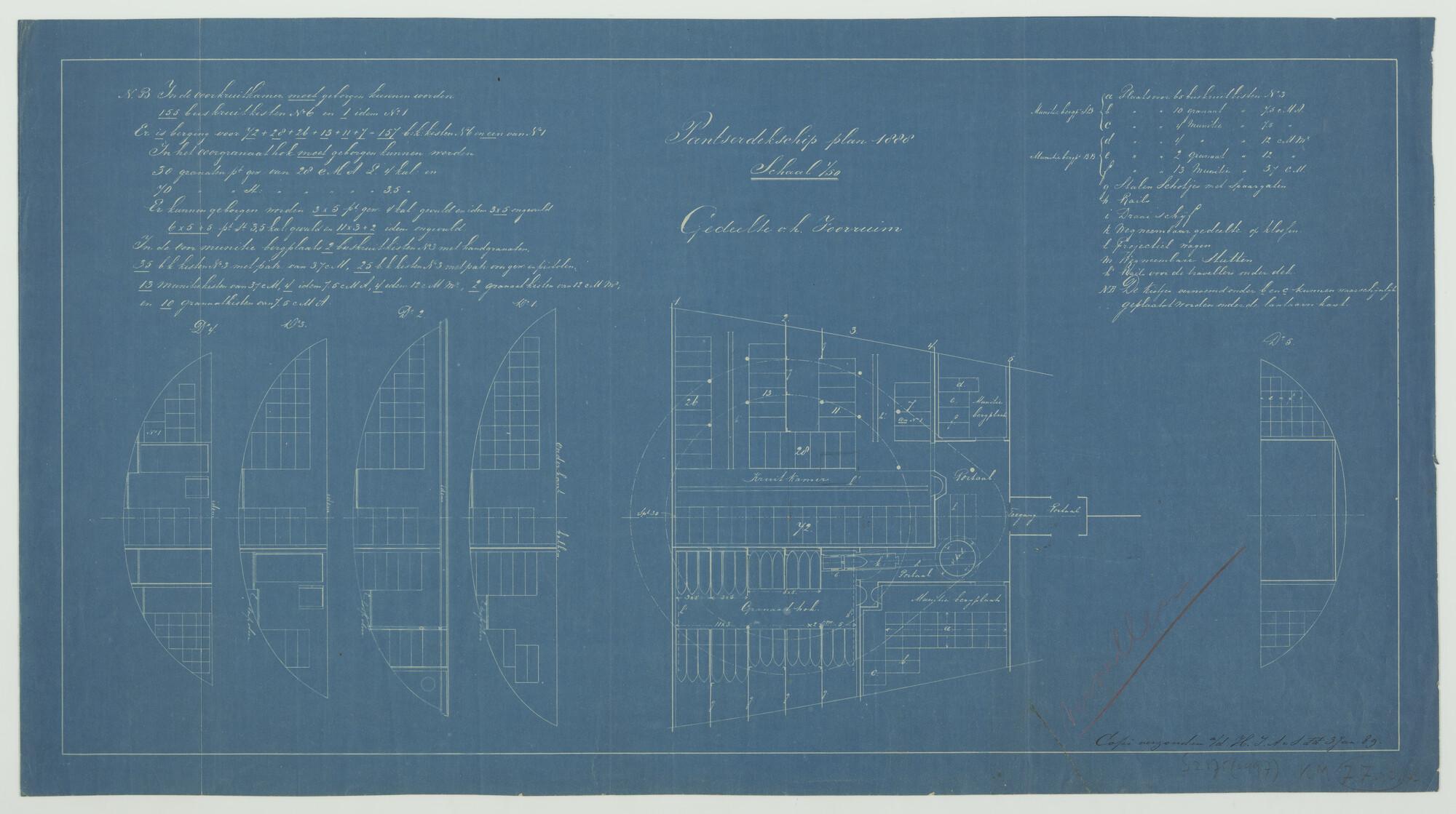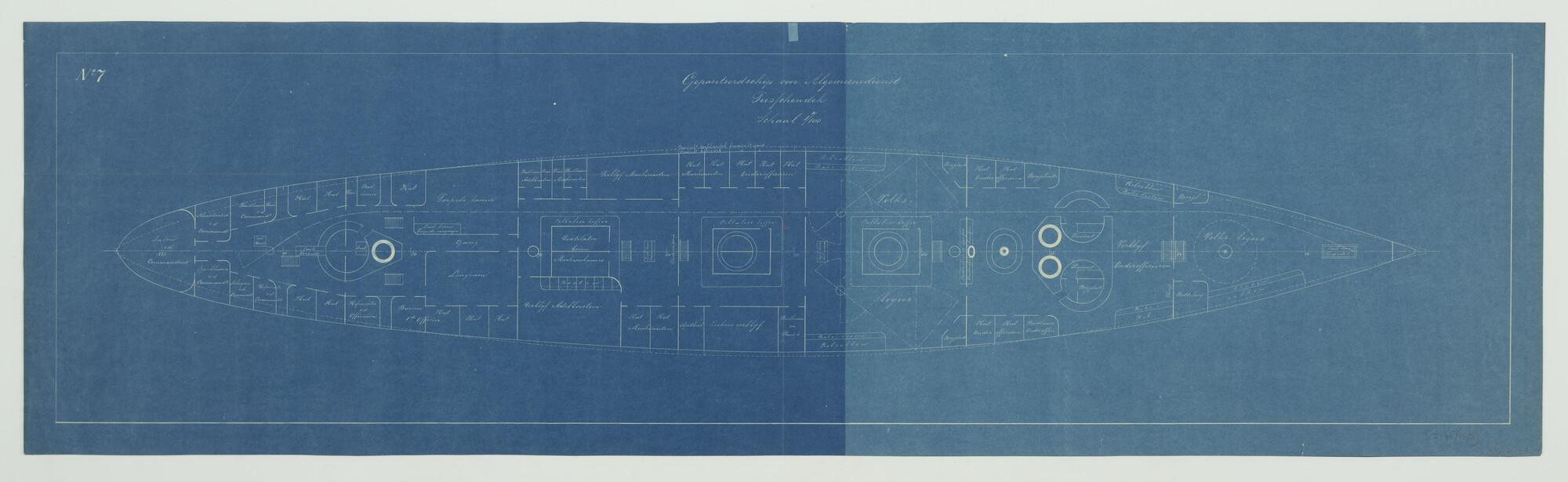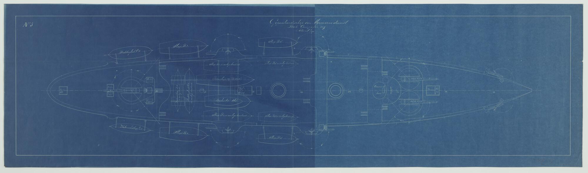 'Pantserdekschip plan 1888'. Bovendek