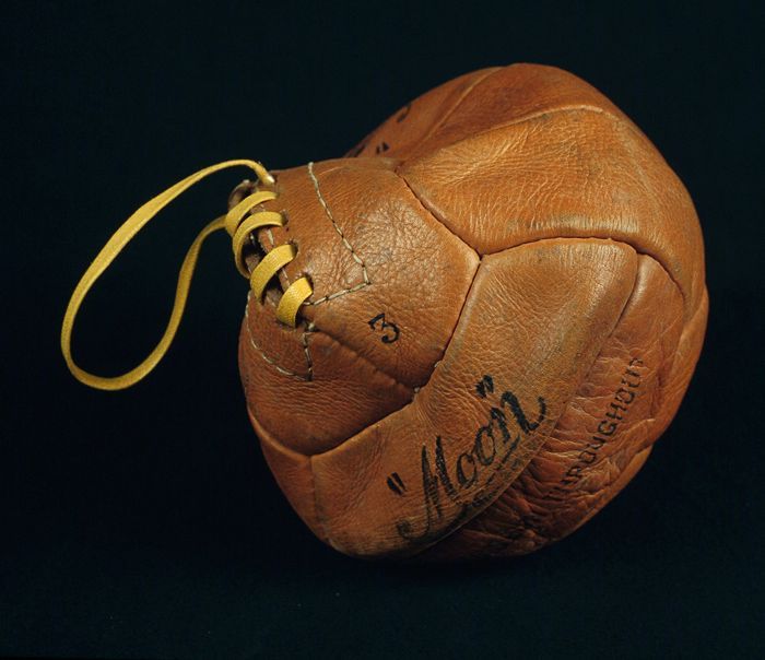 Lichtbruine, leren voetbal met rode rubber binnenbal...