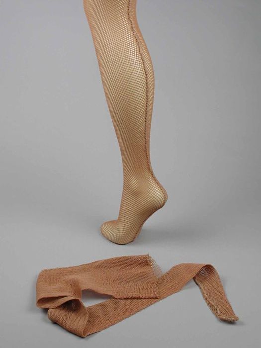 Paar lange oudroze netkousen, elastiek met nylon, "T...