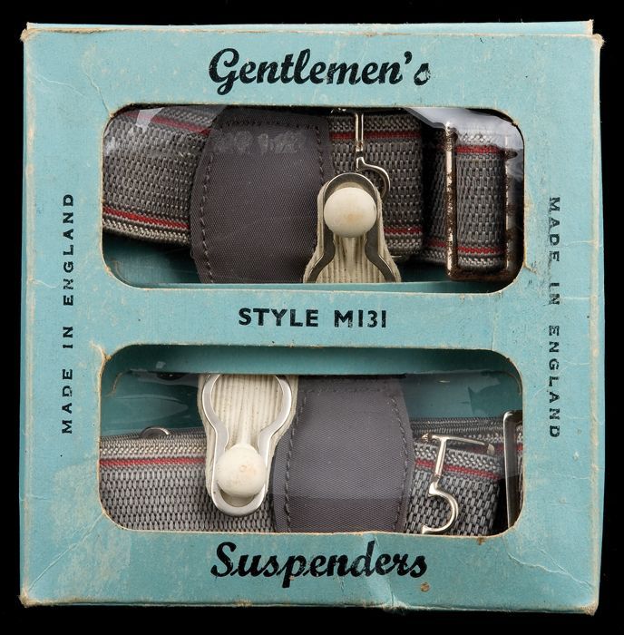 Paar sokophouders, in lichtblauw kartonnen doosje