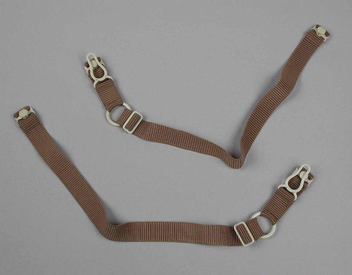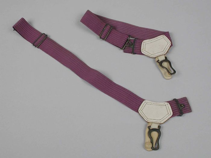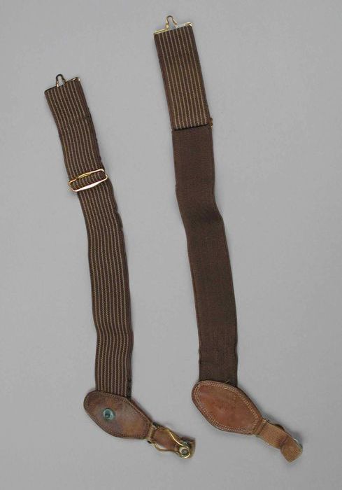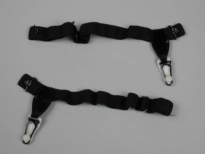 Paar sokophouders, kakikleurig elastisch band met iv...