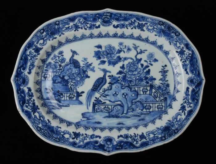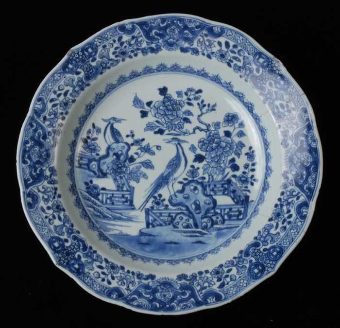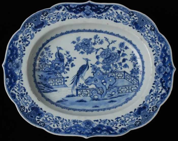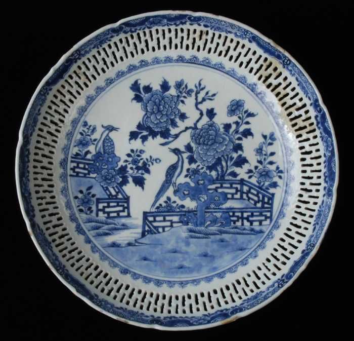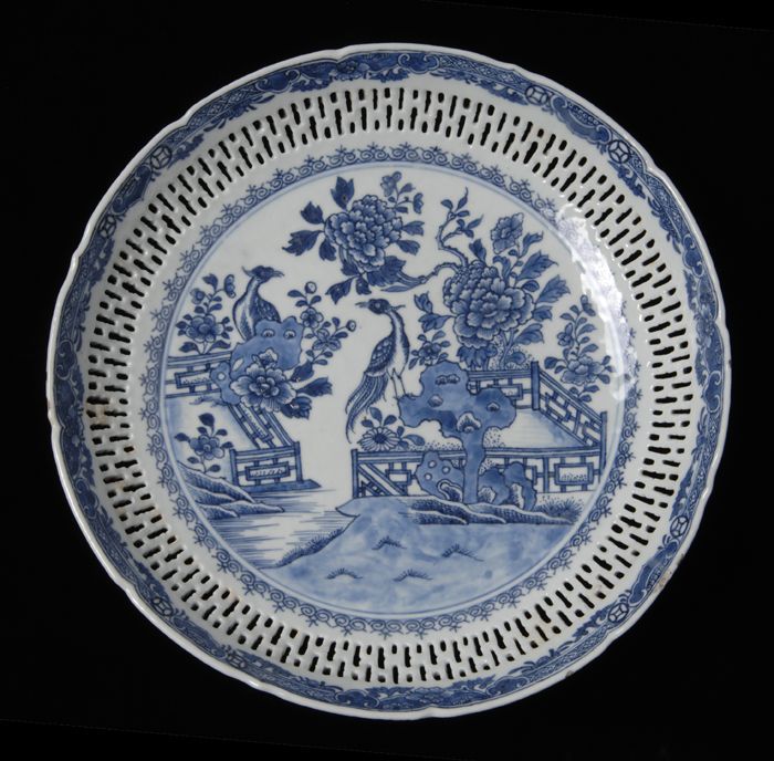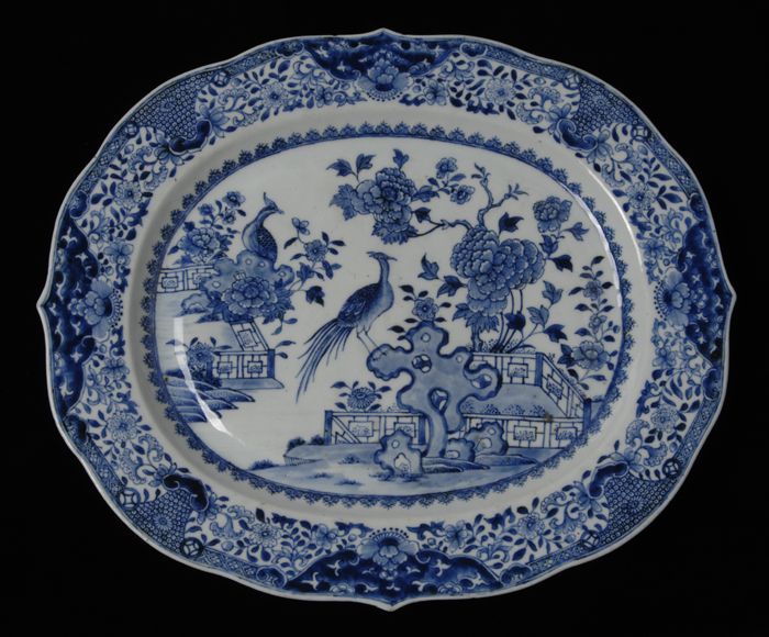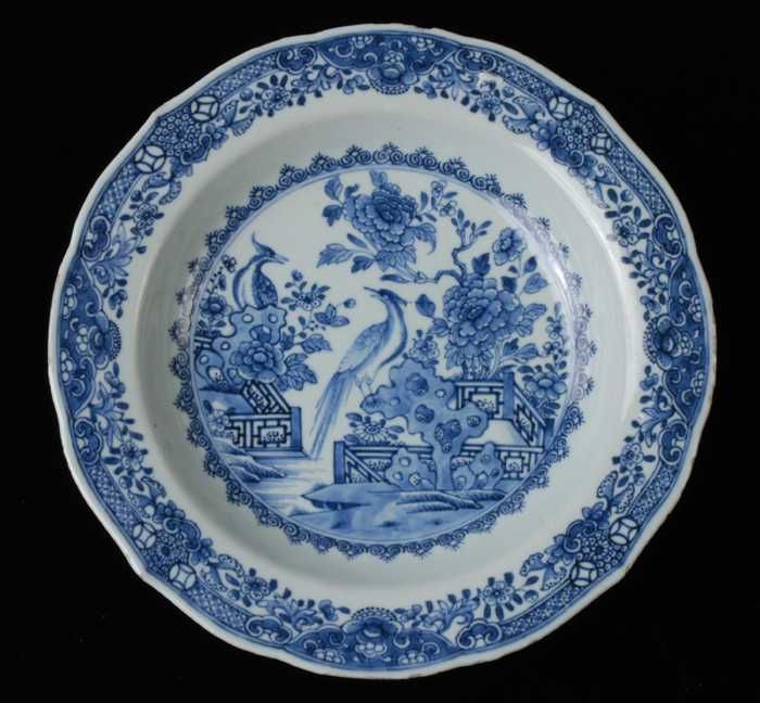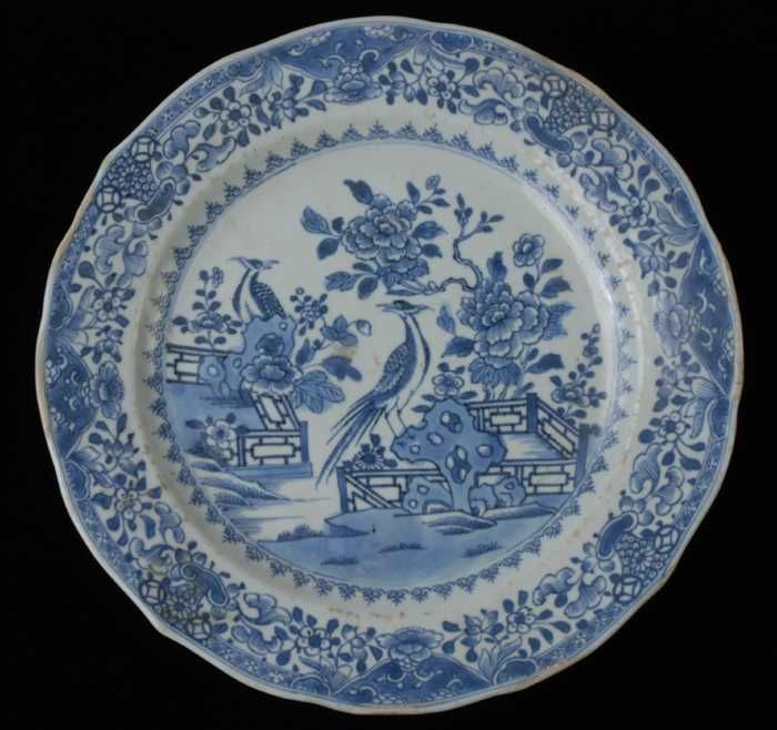 Witte schotel met in blauw op plat twee fazanten, ba...