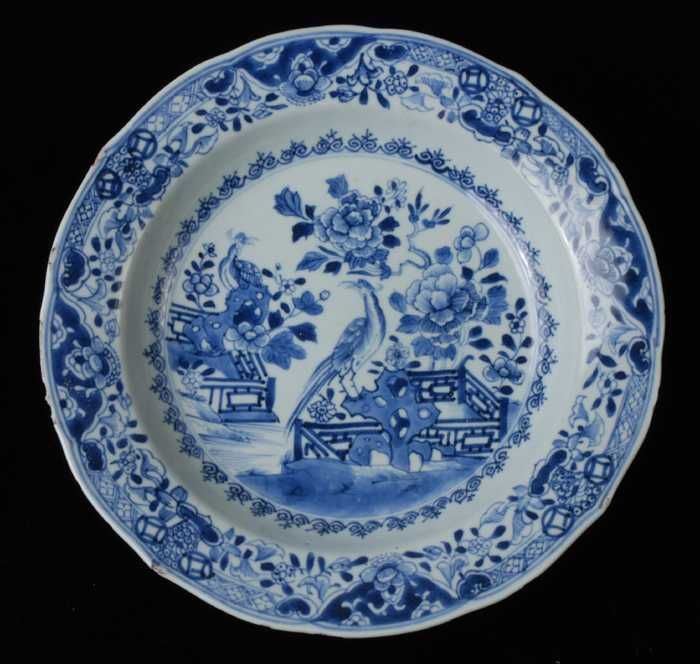 Diep rond bord met op plat twee fazanten, pioenstrui...