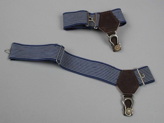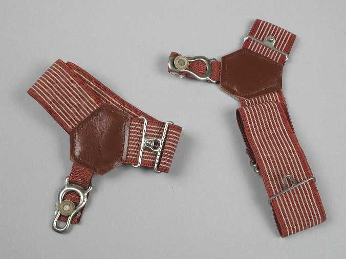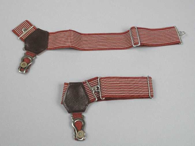 Paar sokophouders, bruin-beige gestreept elastisch b...