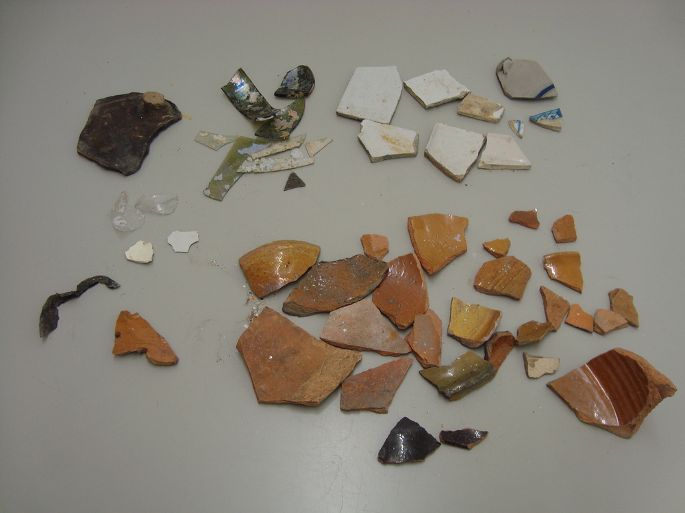 Fragmenten, pijpaarde/majolica/glas/steengoed/aardew...
