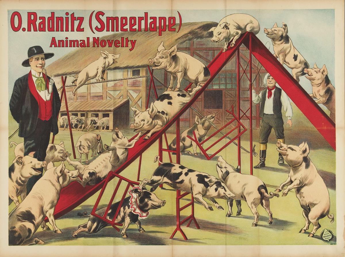 O. Radnitz (Smeerlape) met z'n gedresseerde varkens