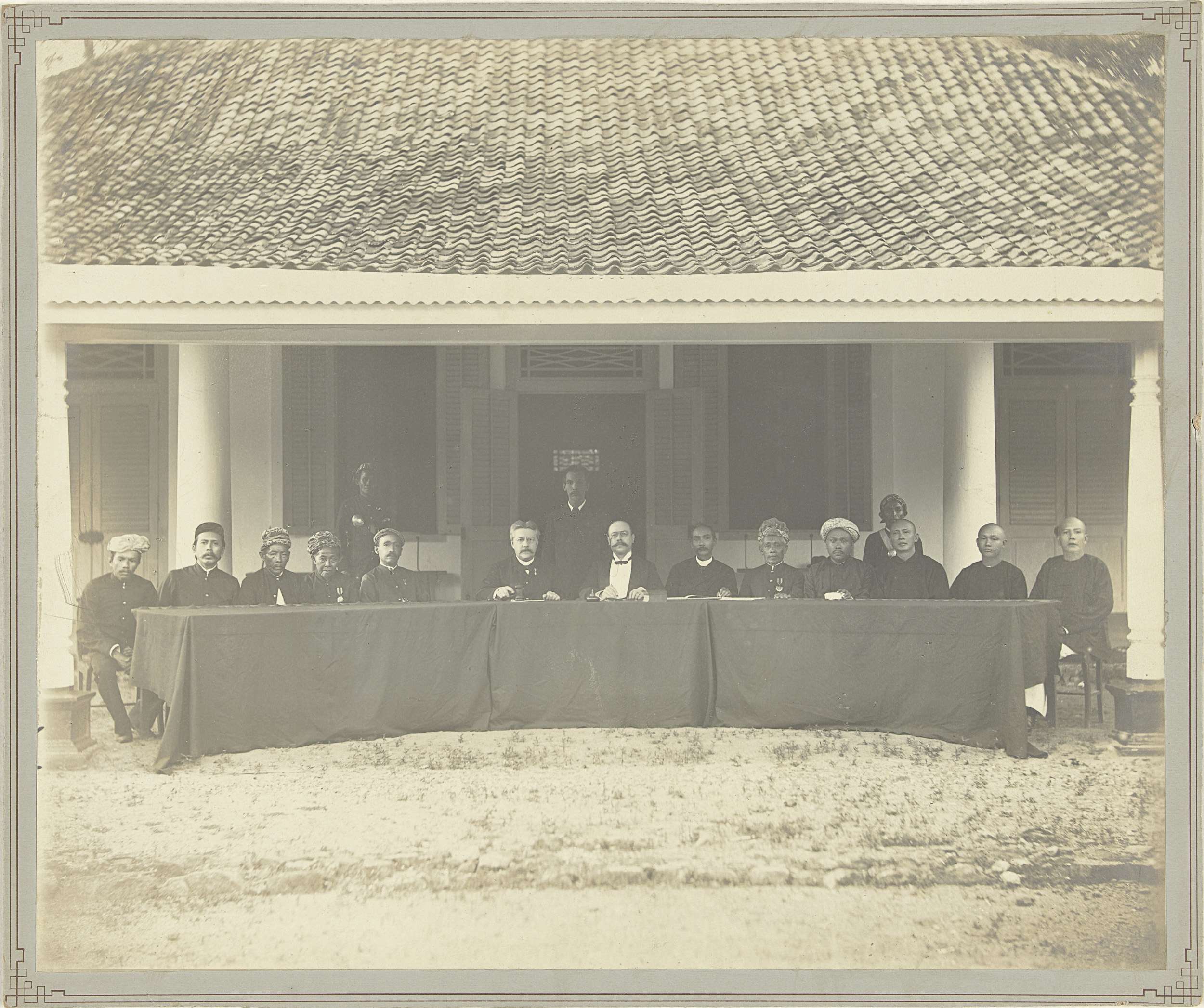 Groepsportret van onbekende lokale en Nederlandse be...