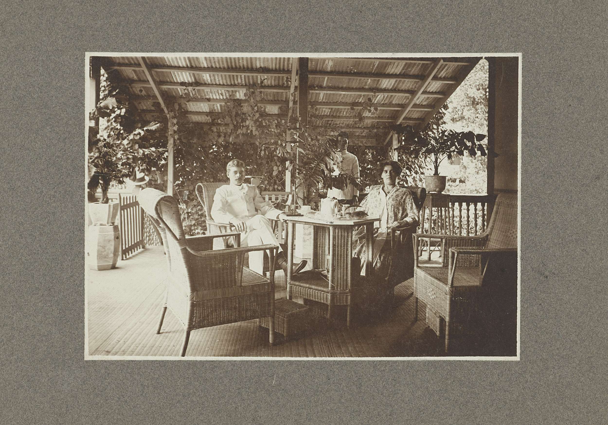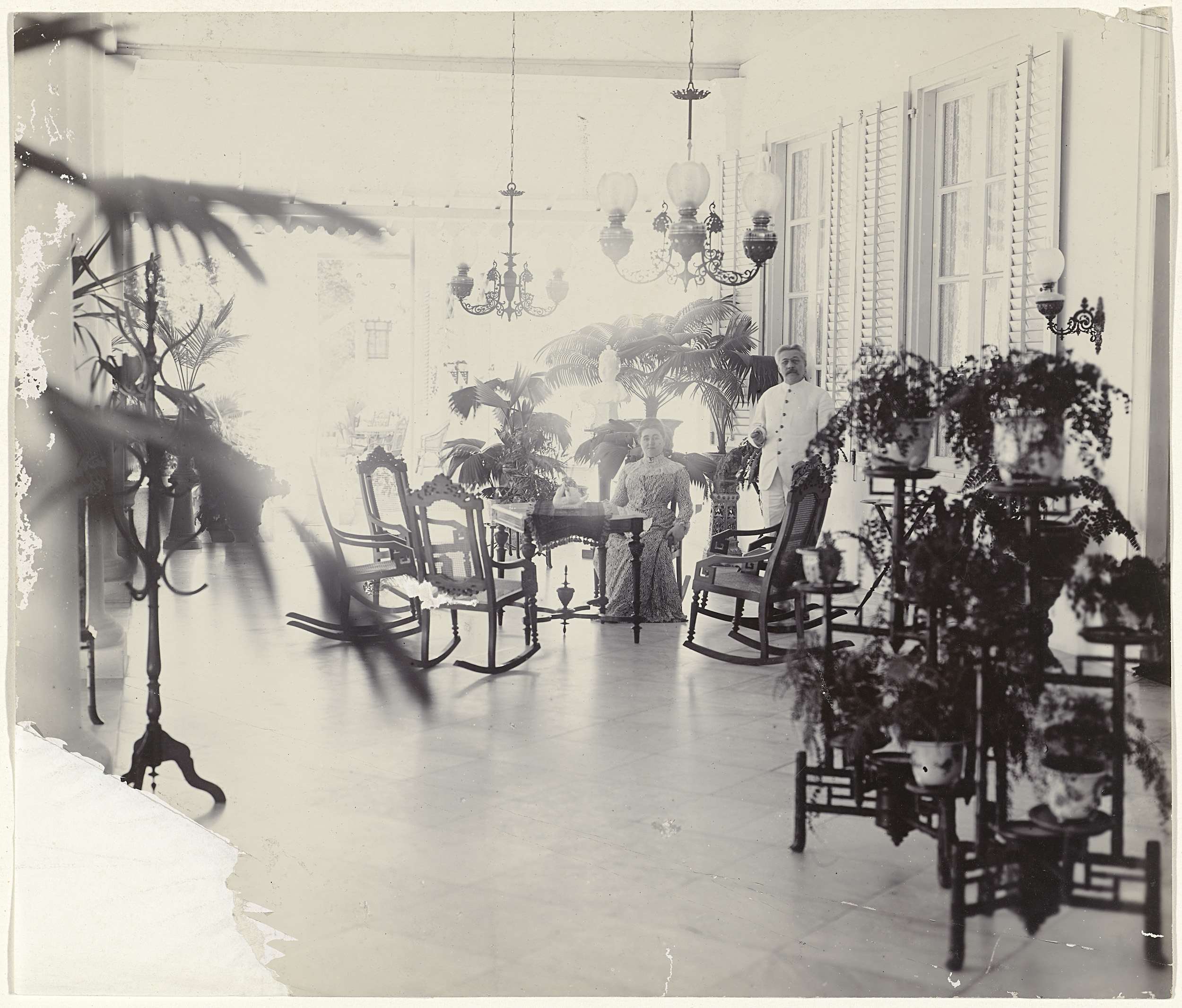 Veranda met meubels in Nederlands-Indië