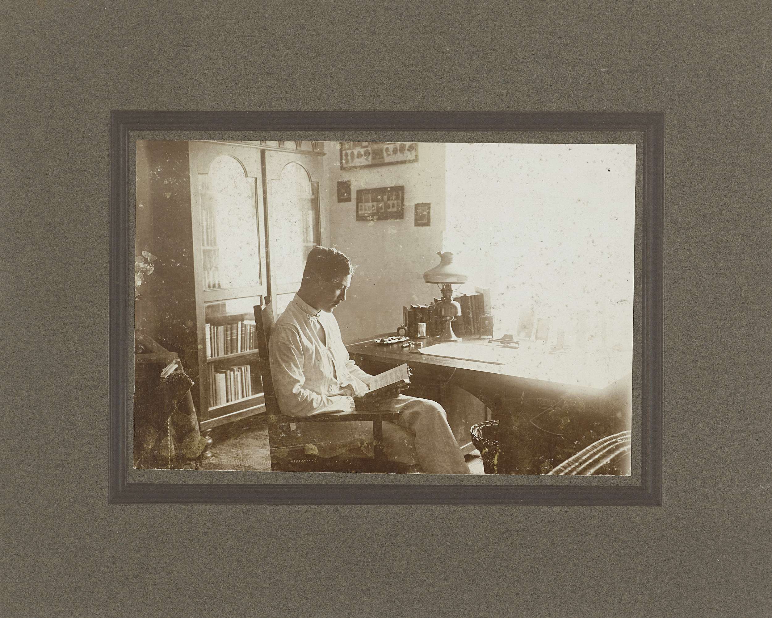 Portret van een onbekende man achter zijn bureau, wa...