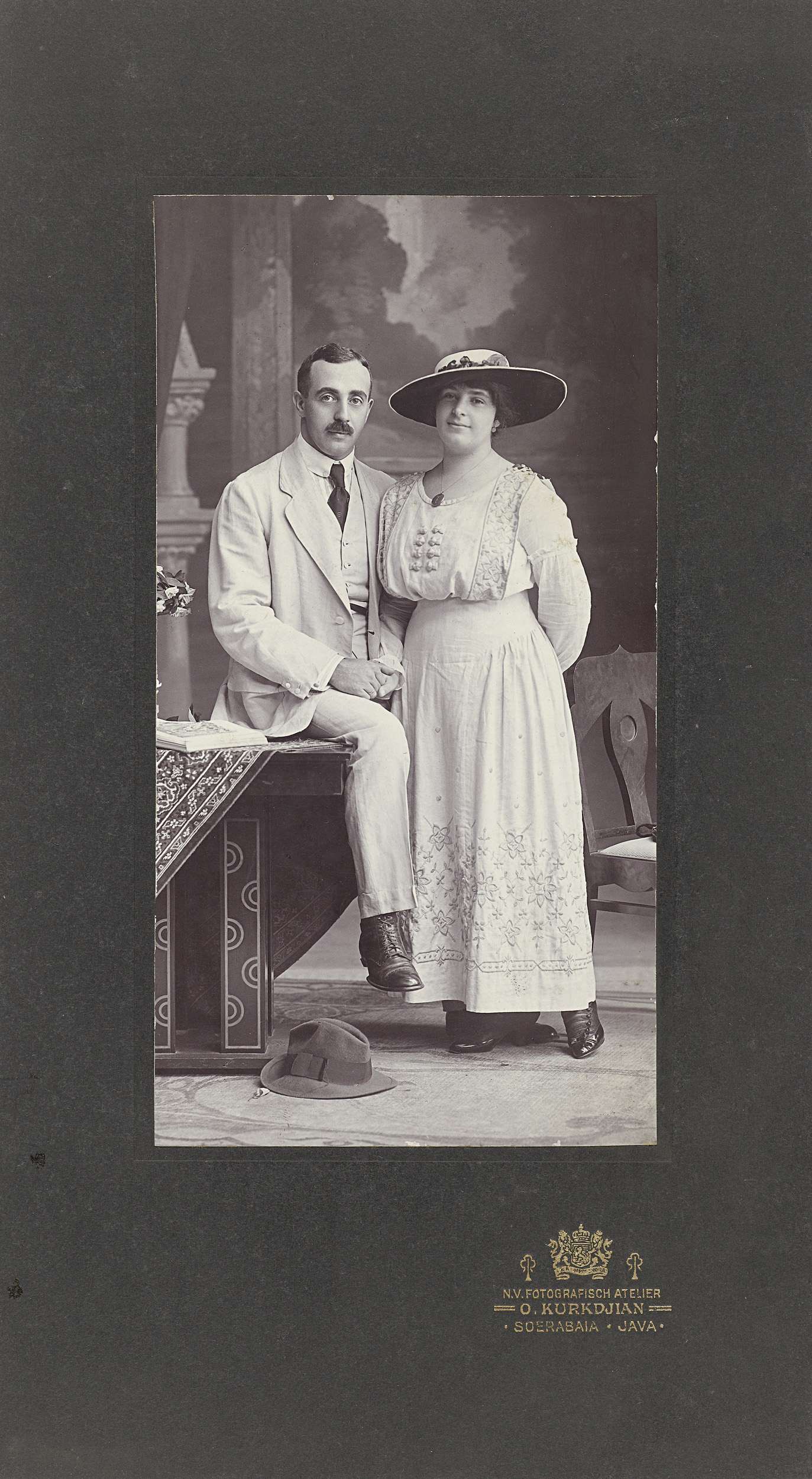 Studioportret van een onbekend paar, Soerabaja