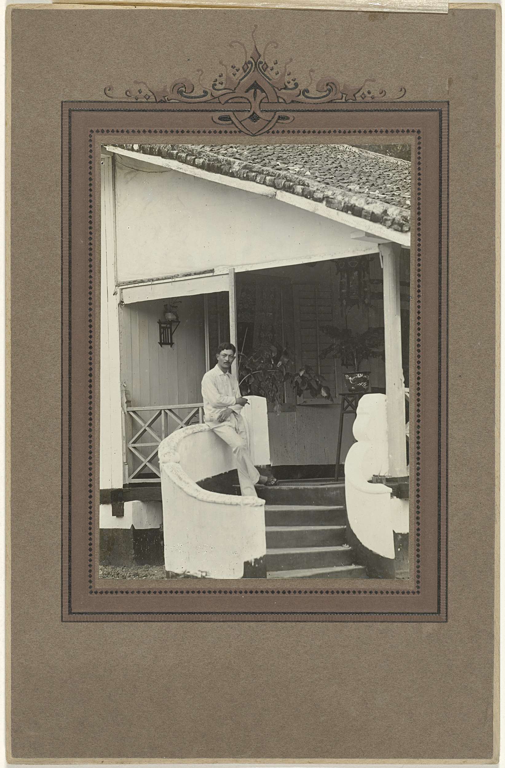 Portret van een onbekende man op een verandatrap, Ne...