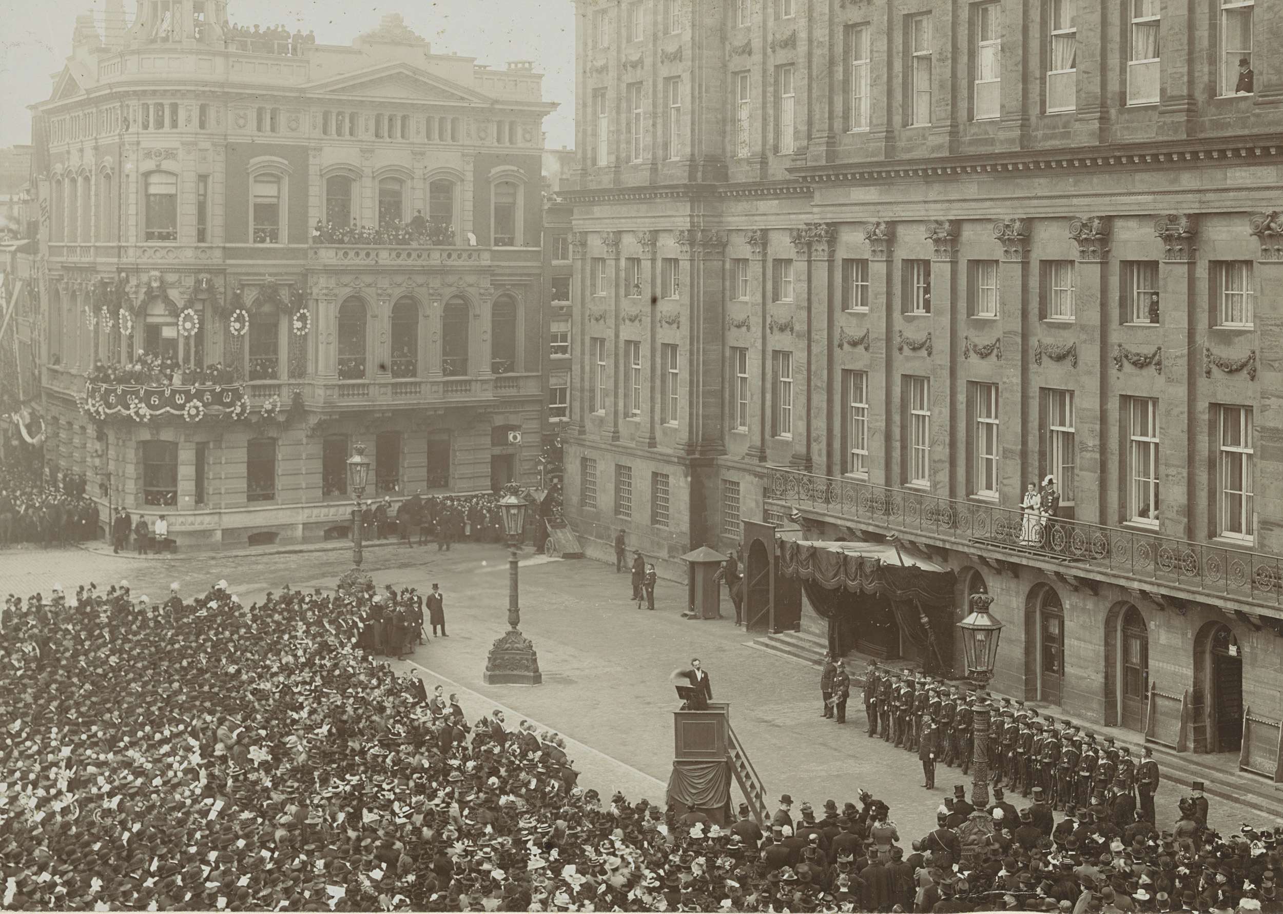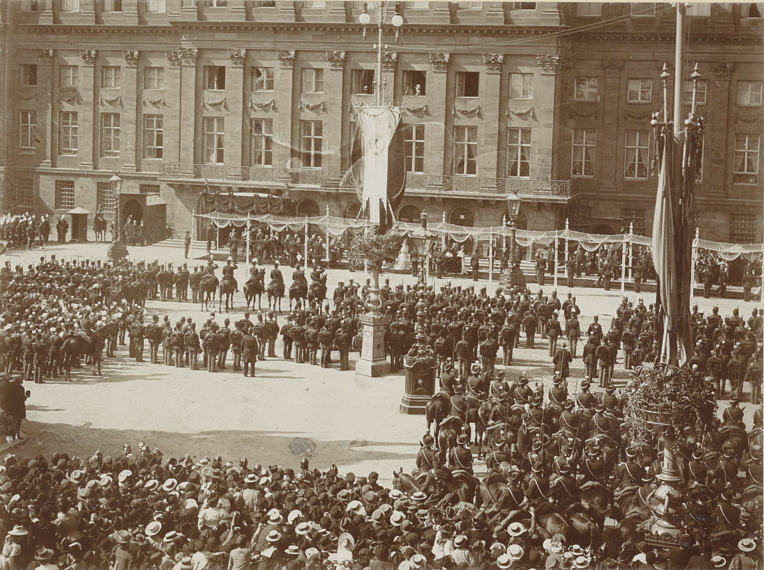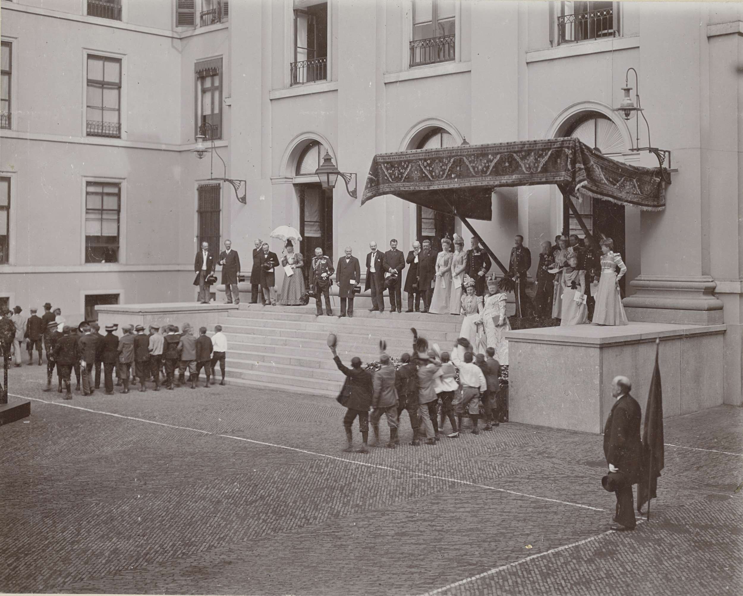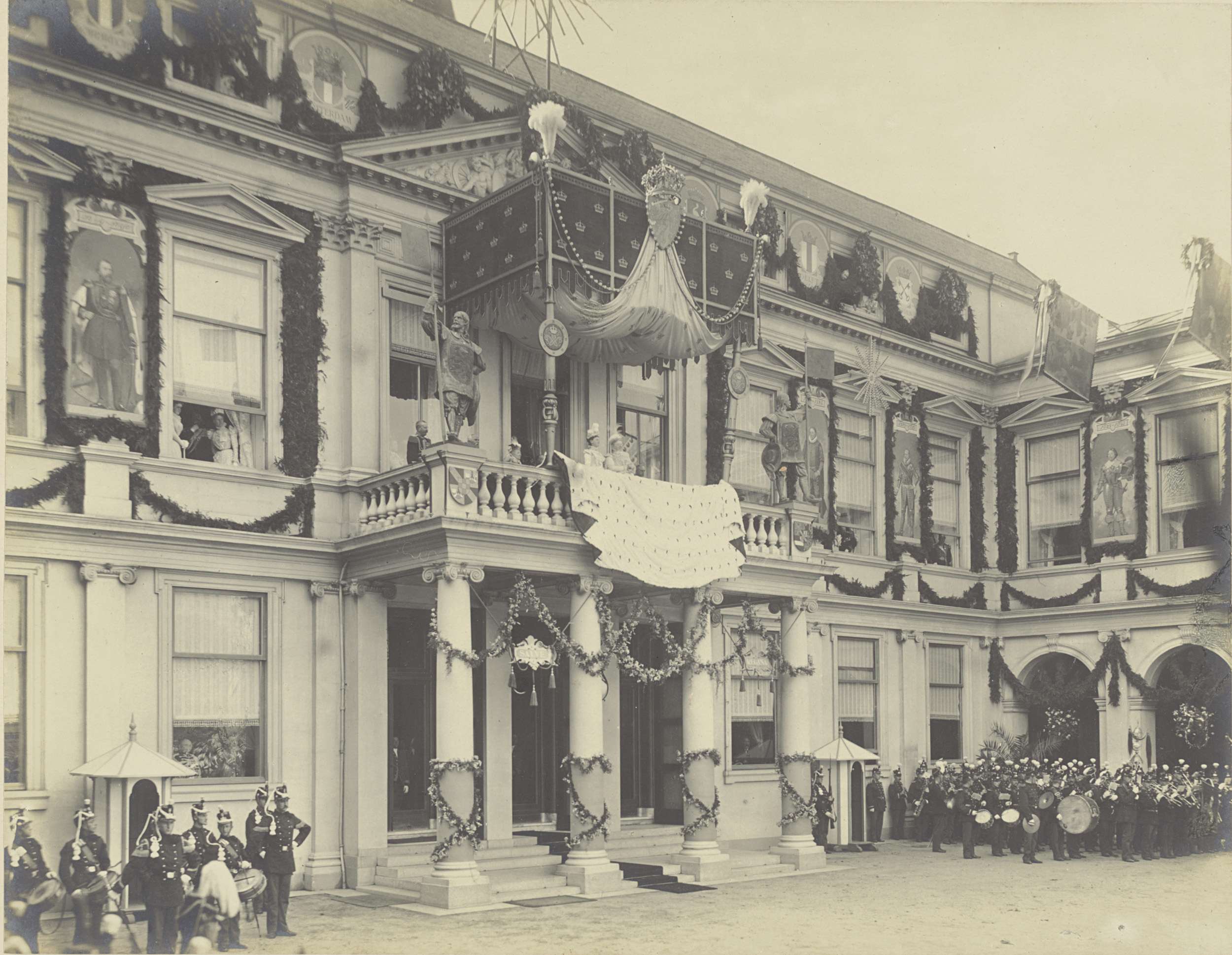 Koningin Wilhelmina en Prins Hendrik op het balkon v...
