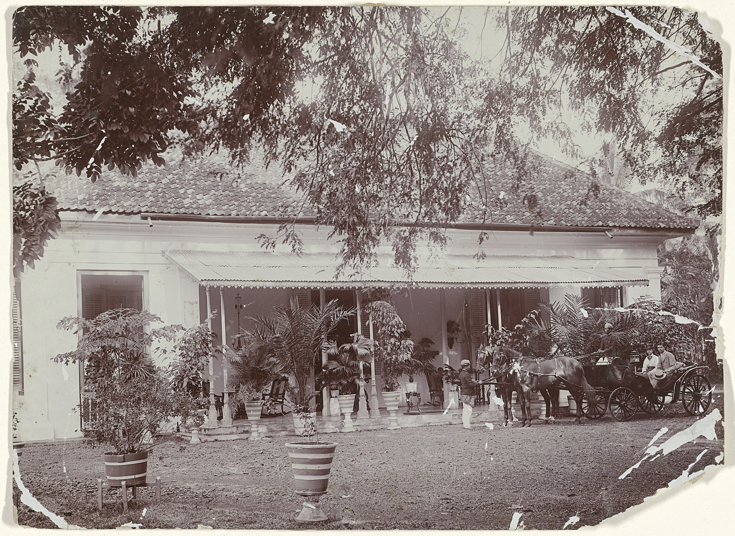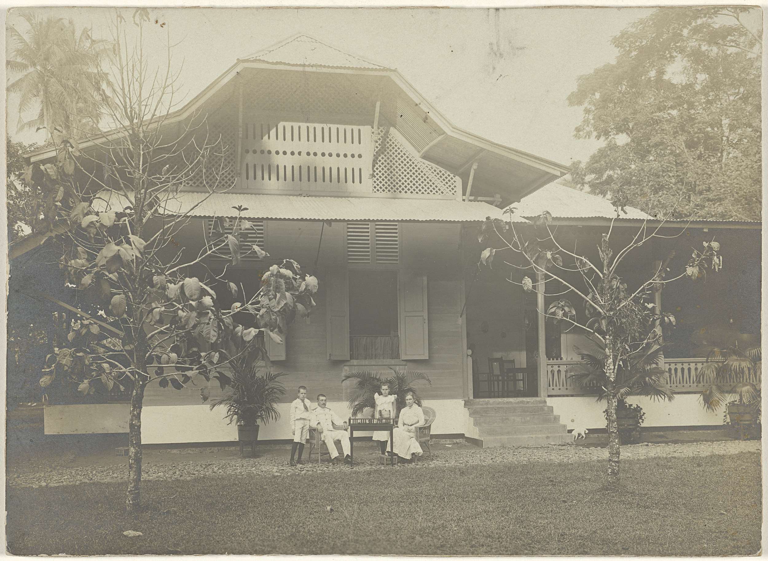 Huis in Nederlands-Indië, met onbekend echtpaar en b...