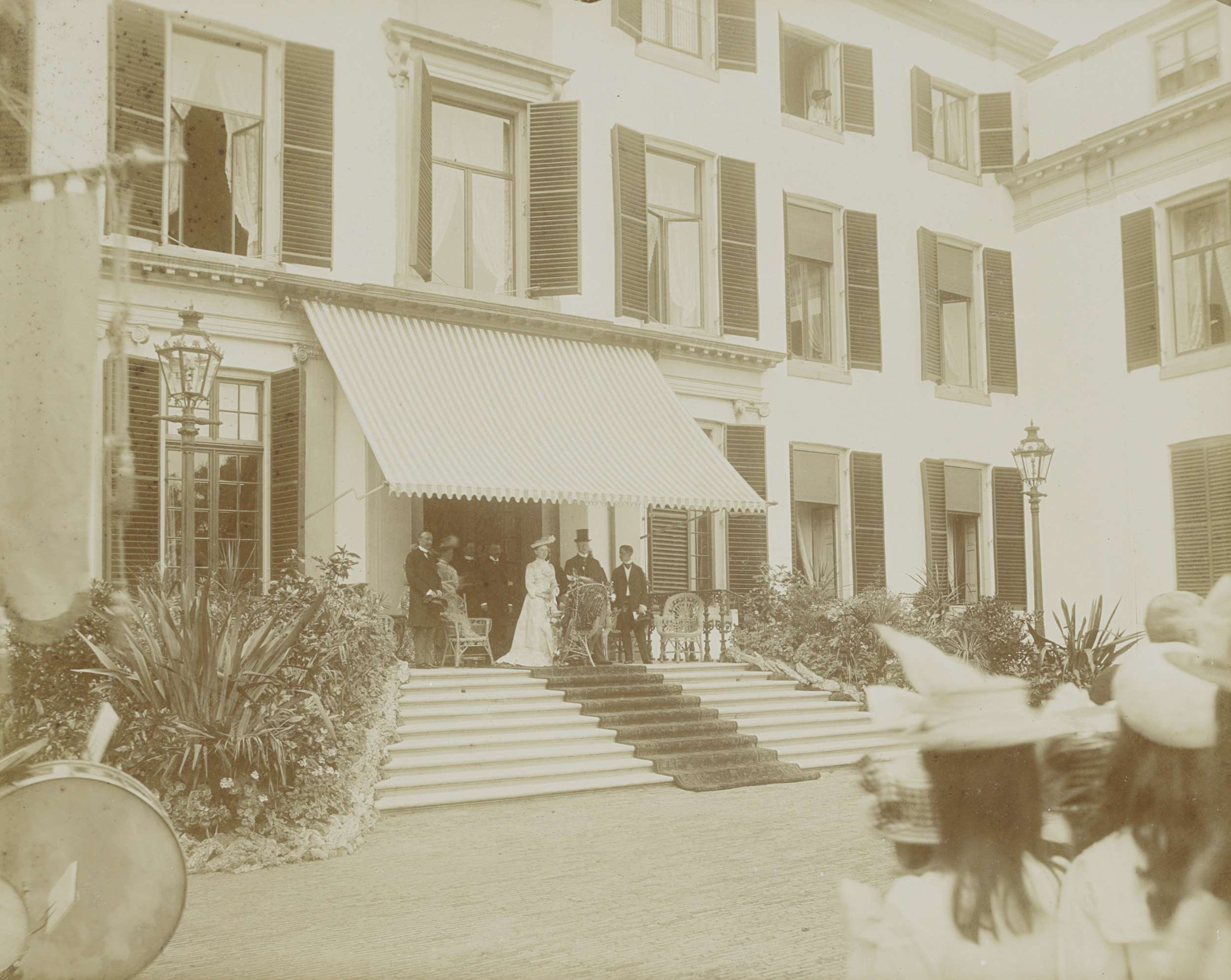 Portret van een onbekend echtpaar op een veranda in ...